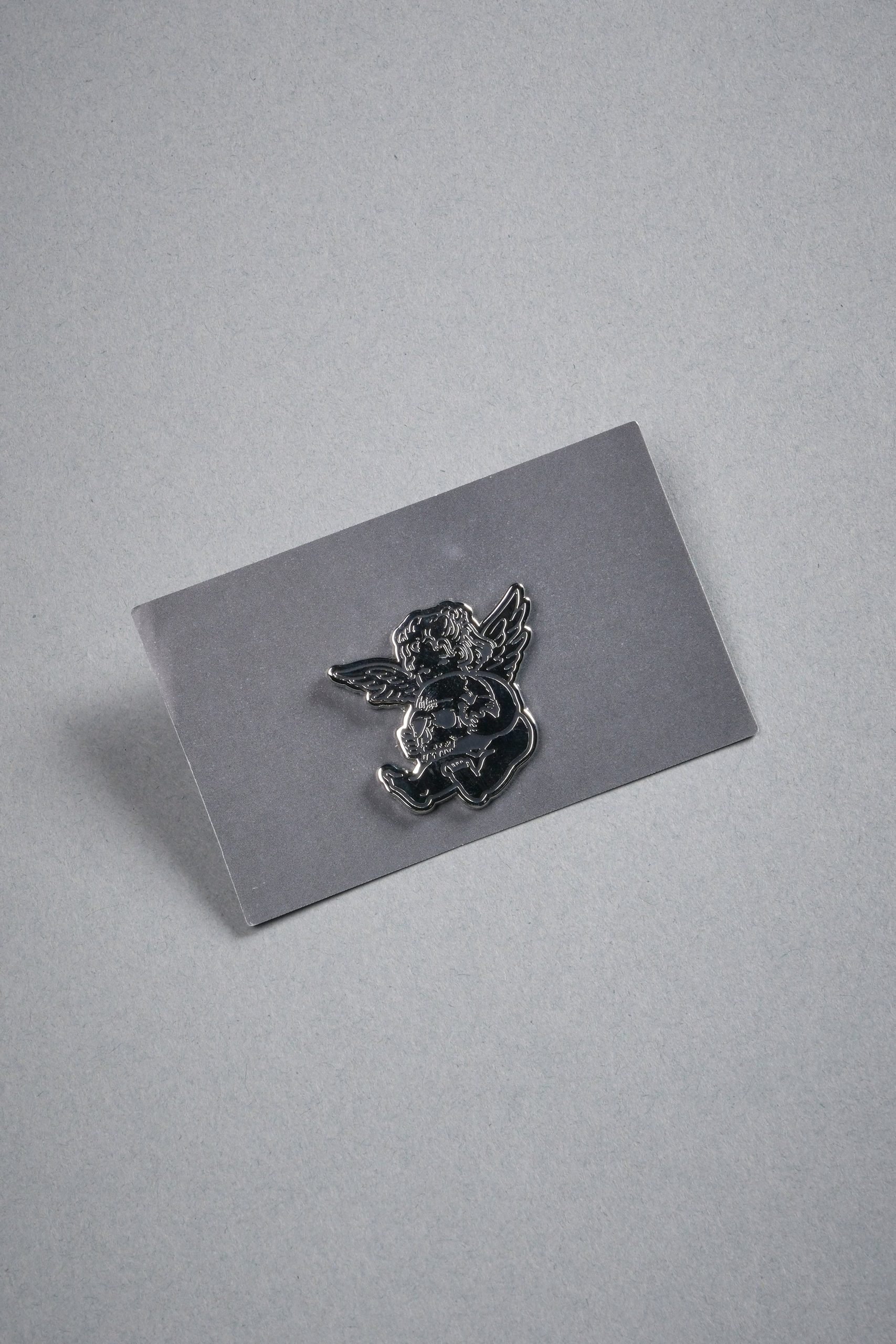 Darc Cherub Enamel Pin in Silver/Black