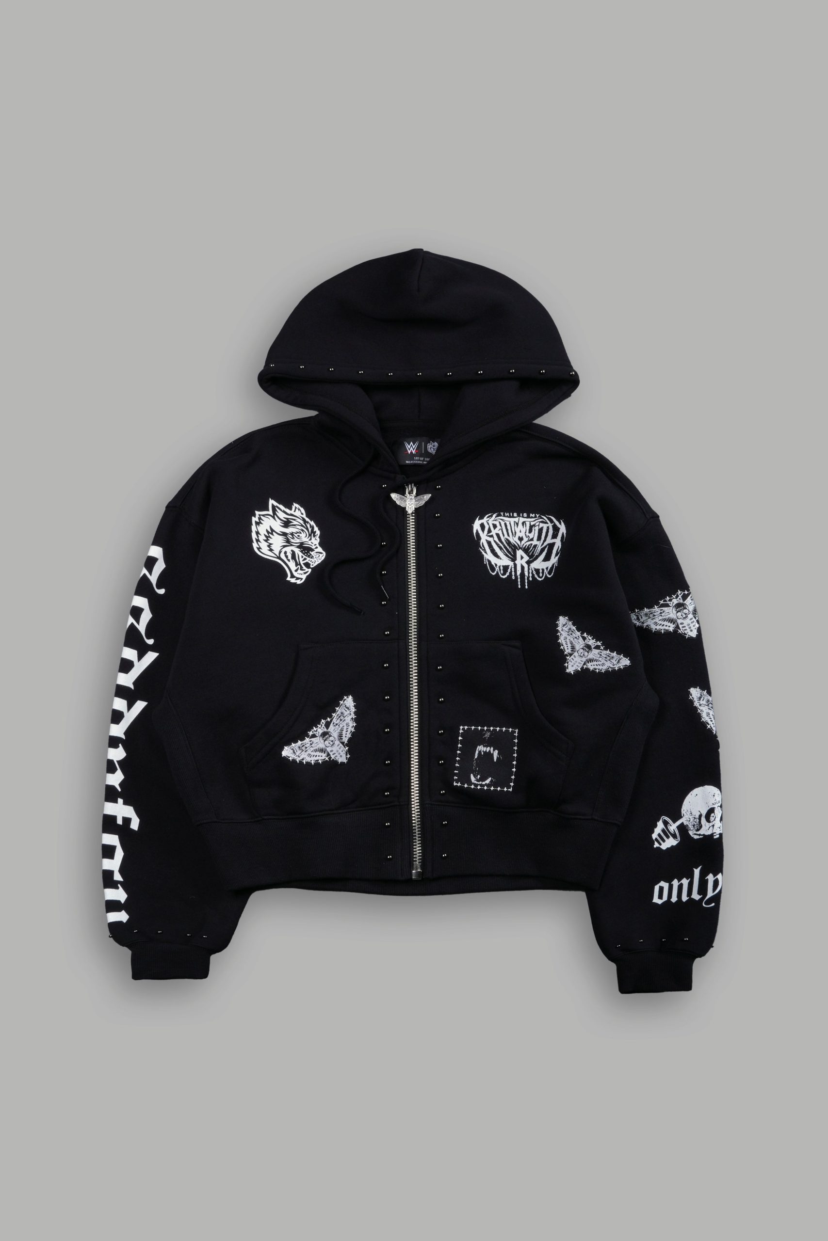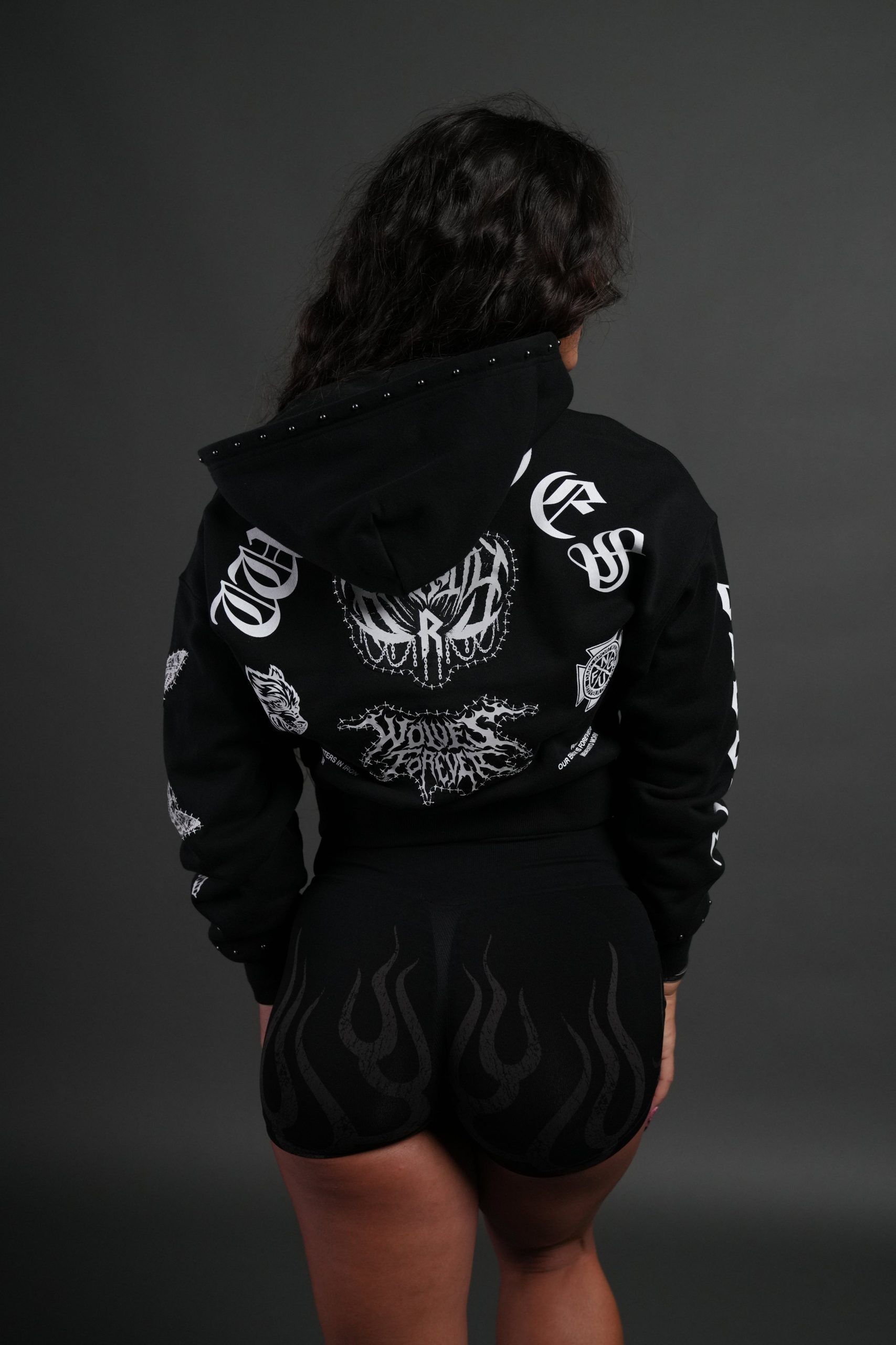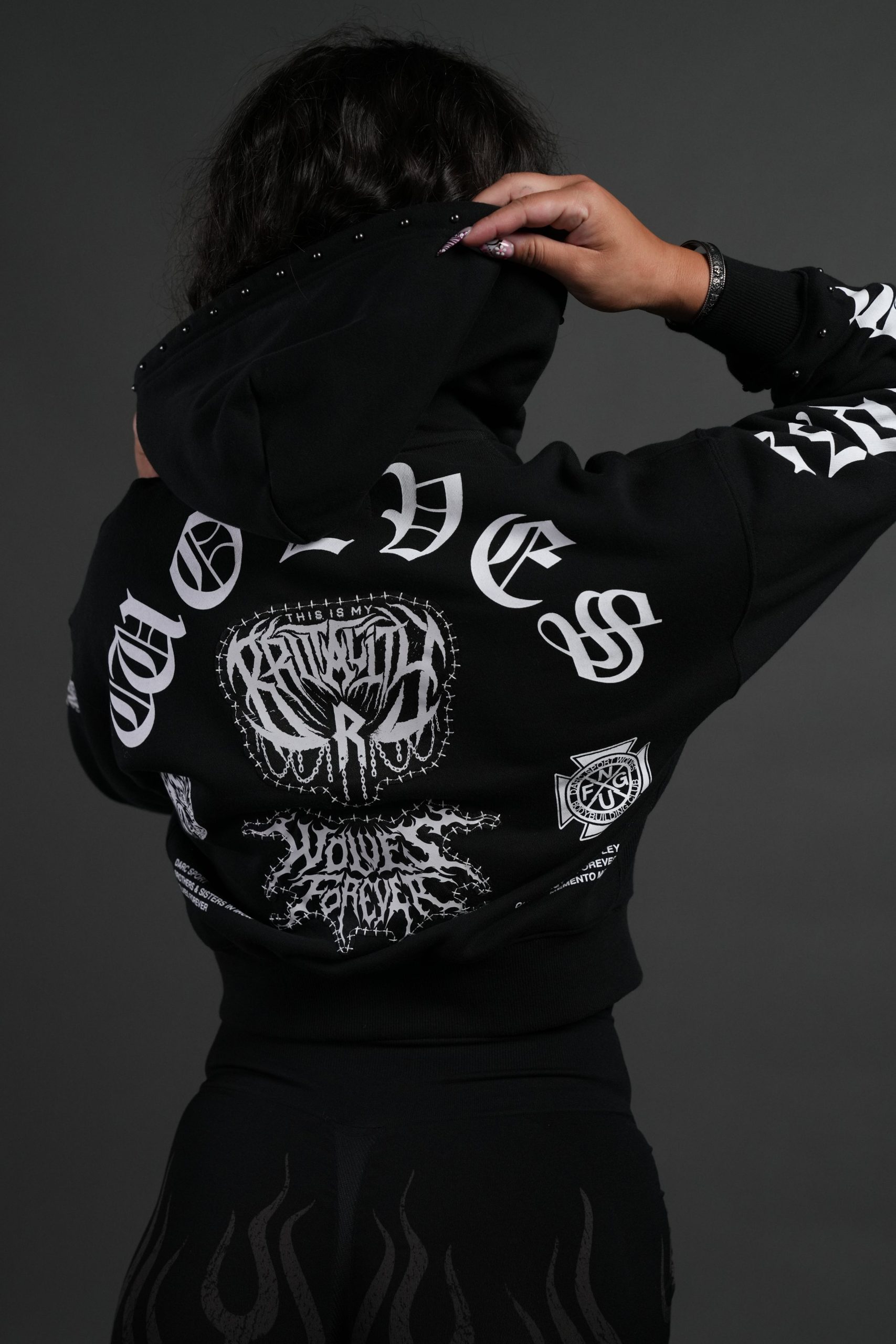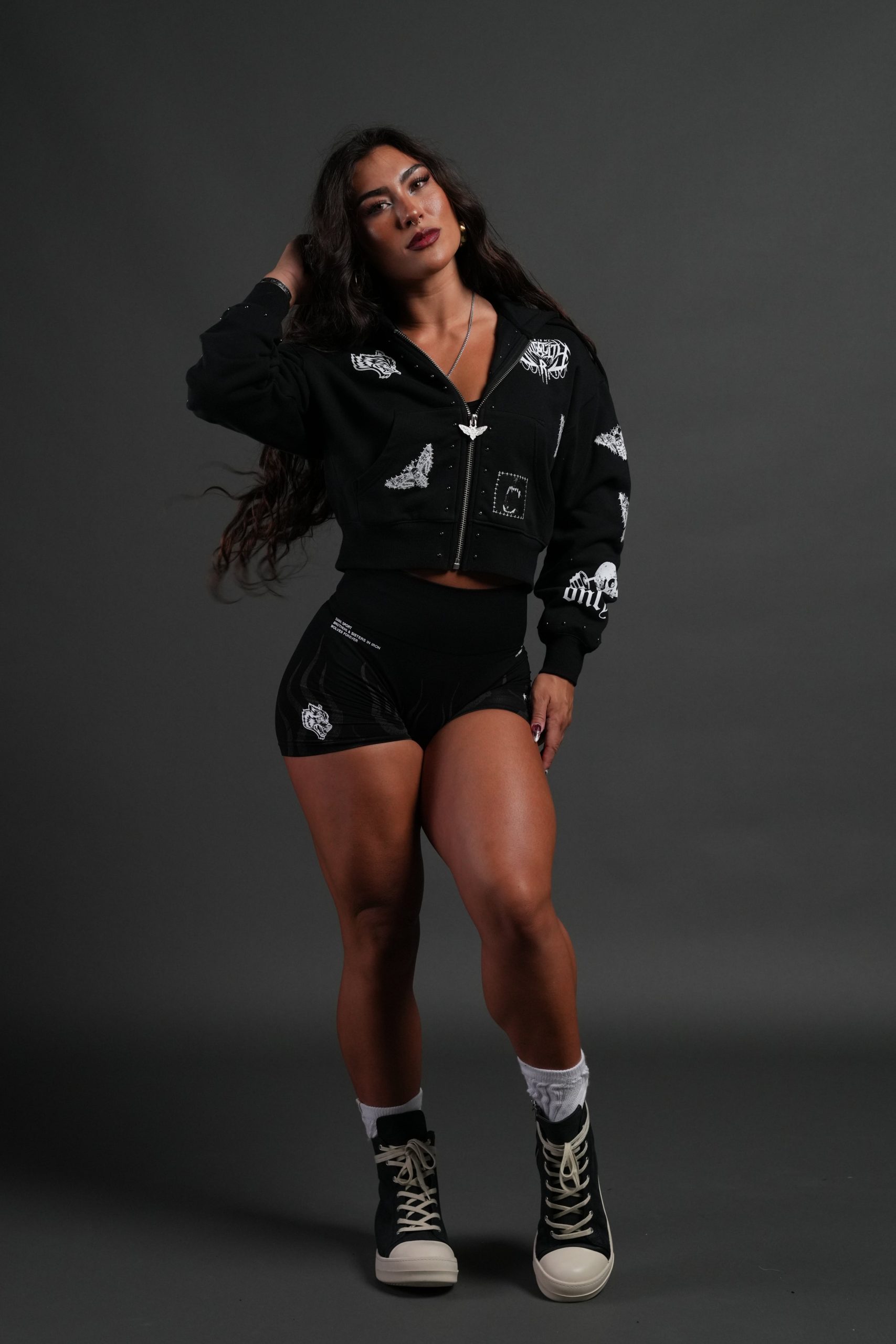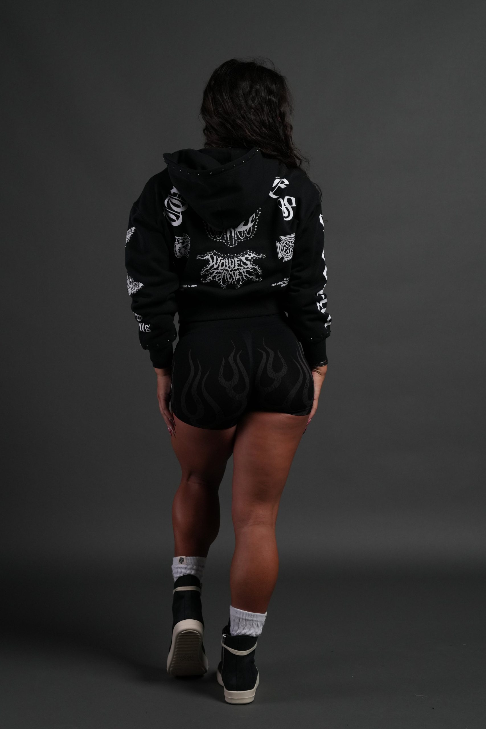 Give it Your All Sage Cropped Zip Hoodie in Black