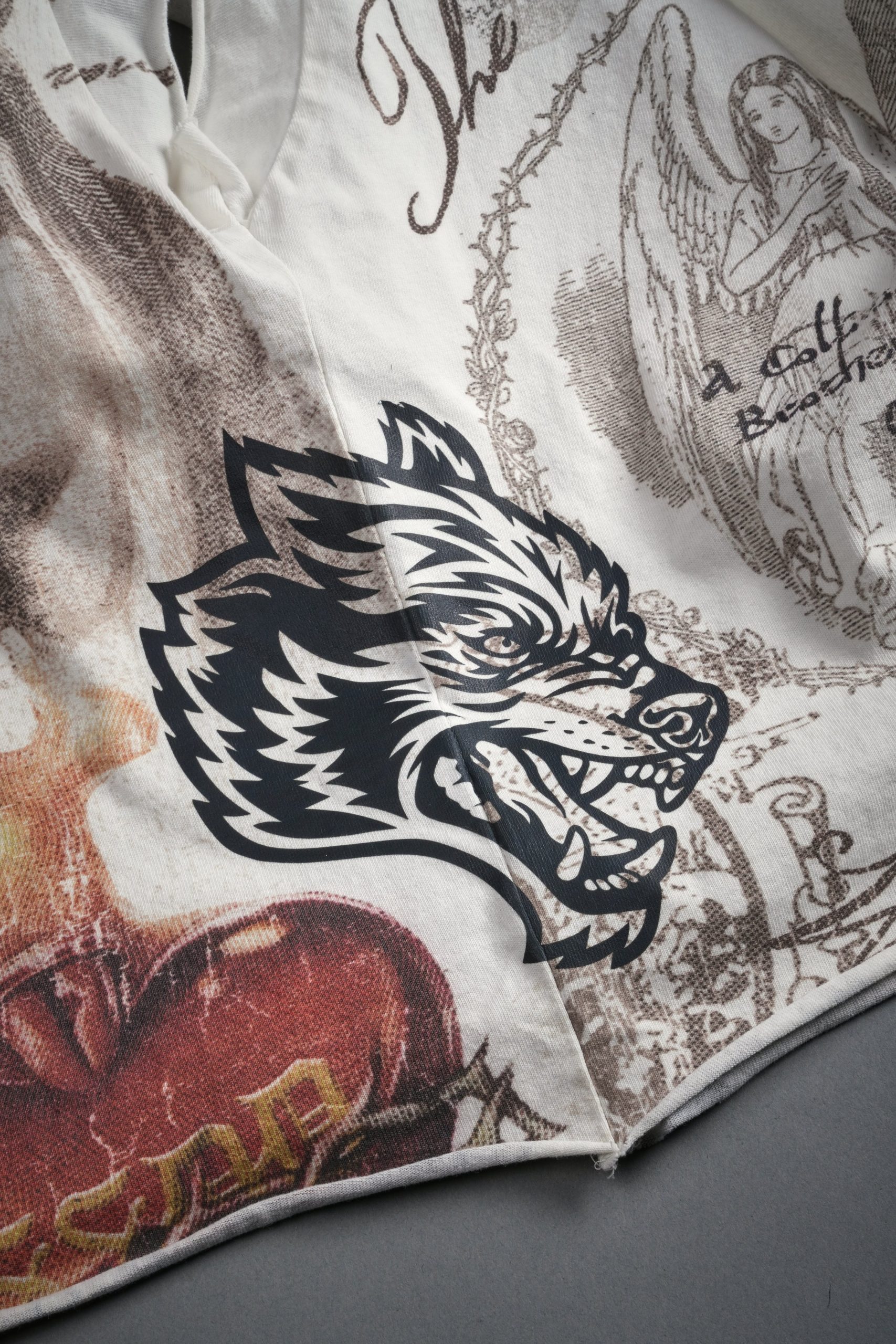 Heart of Thorns Distressed Grunge Cut-Off Mid-Length Raw Hem Tee in Cream