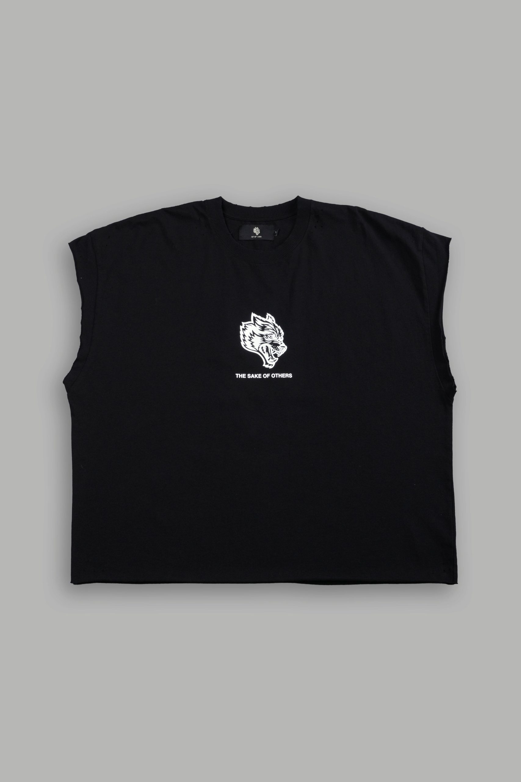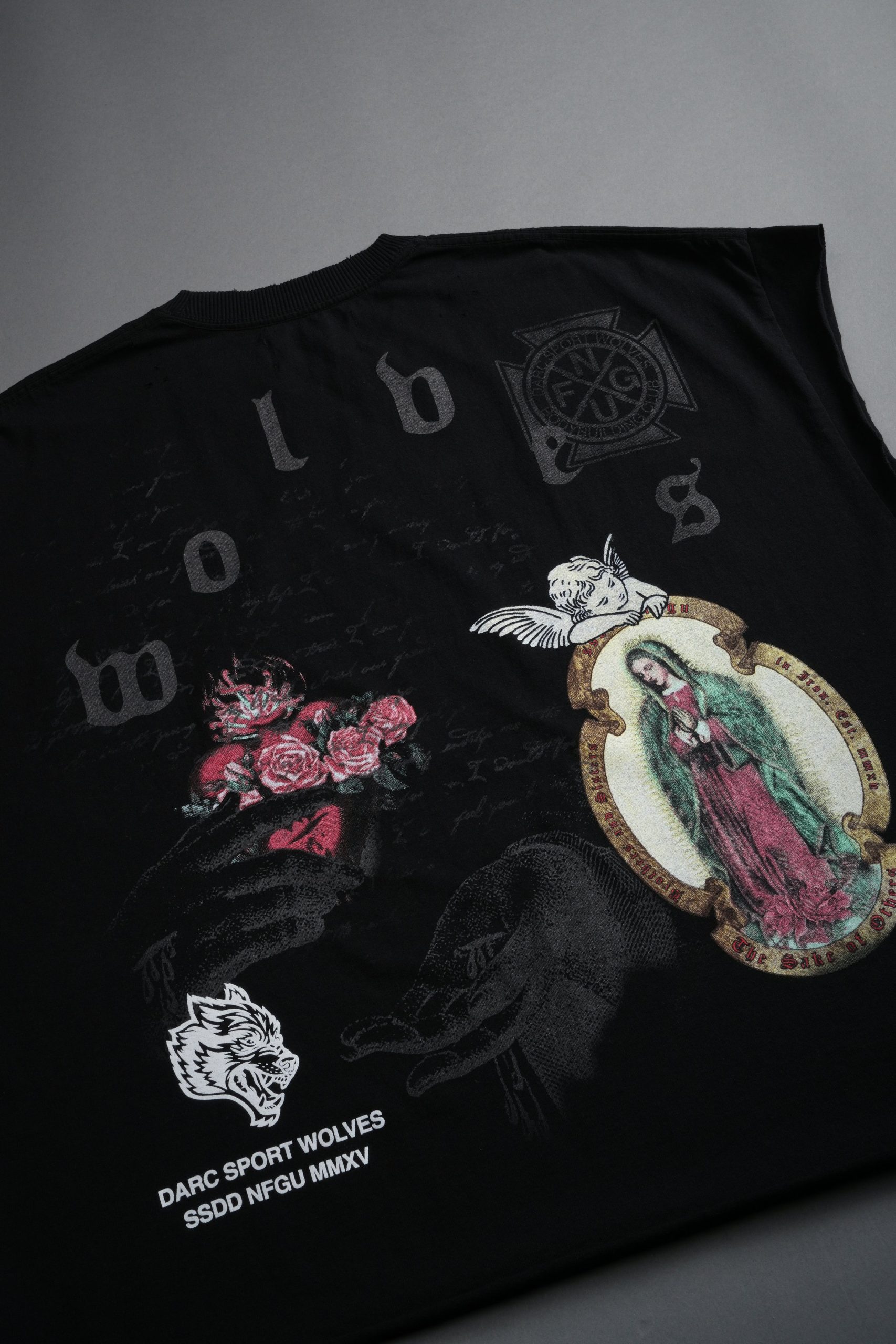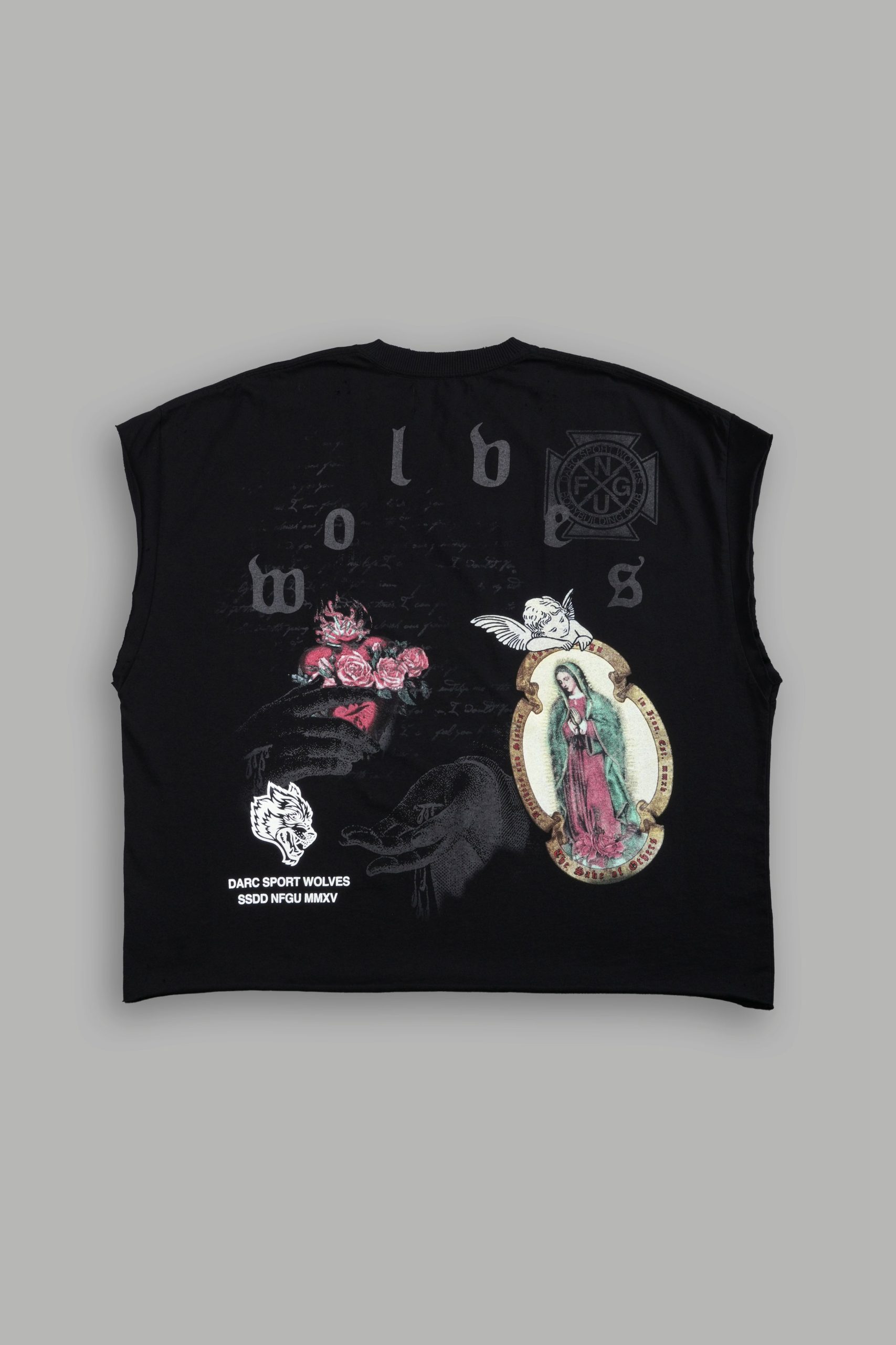 Holy Vow Distressed Grunge Cut-Off Mid-Length Raw Hem Tee in Black