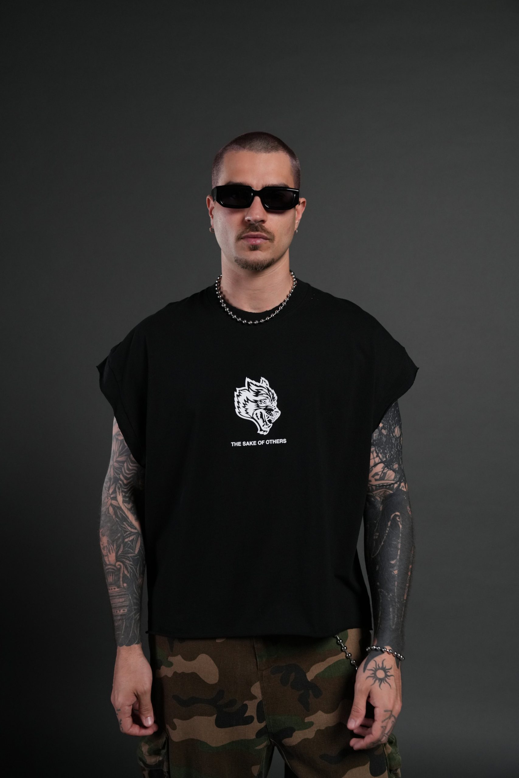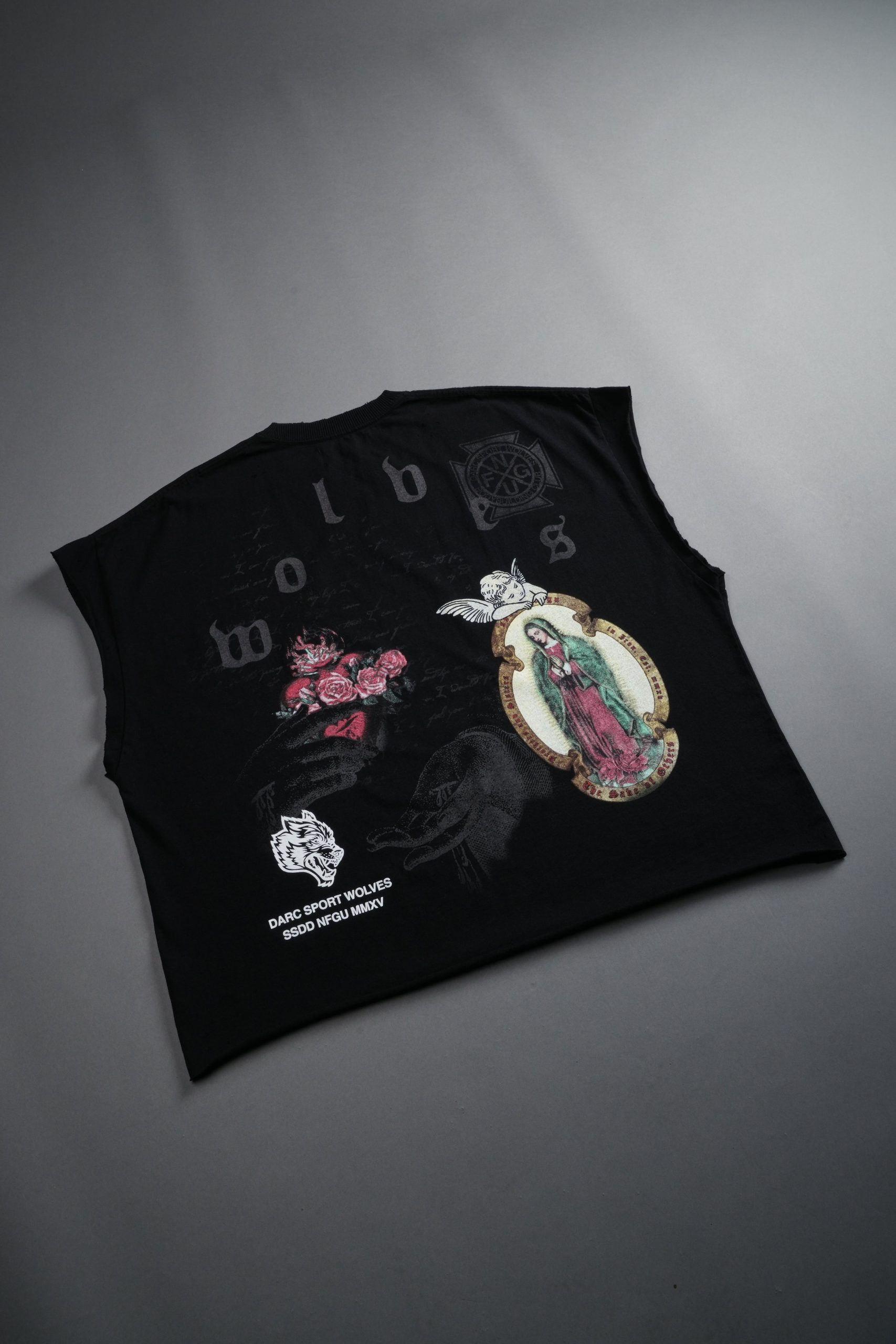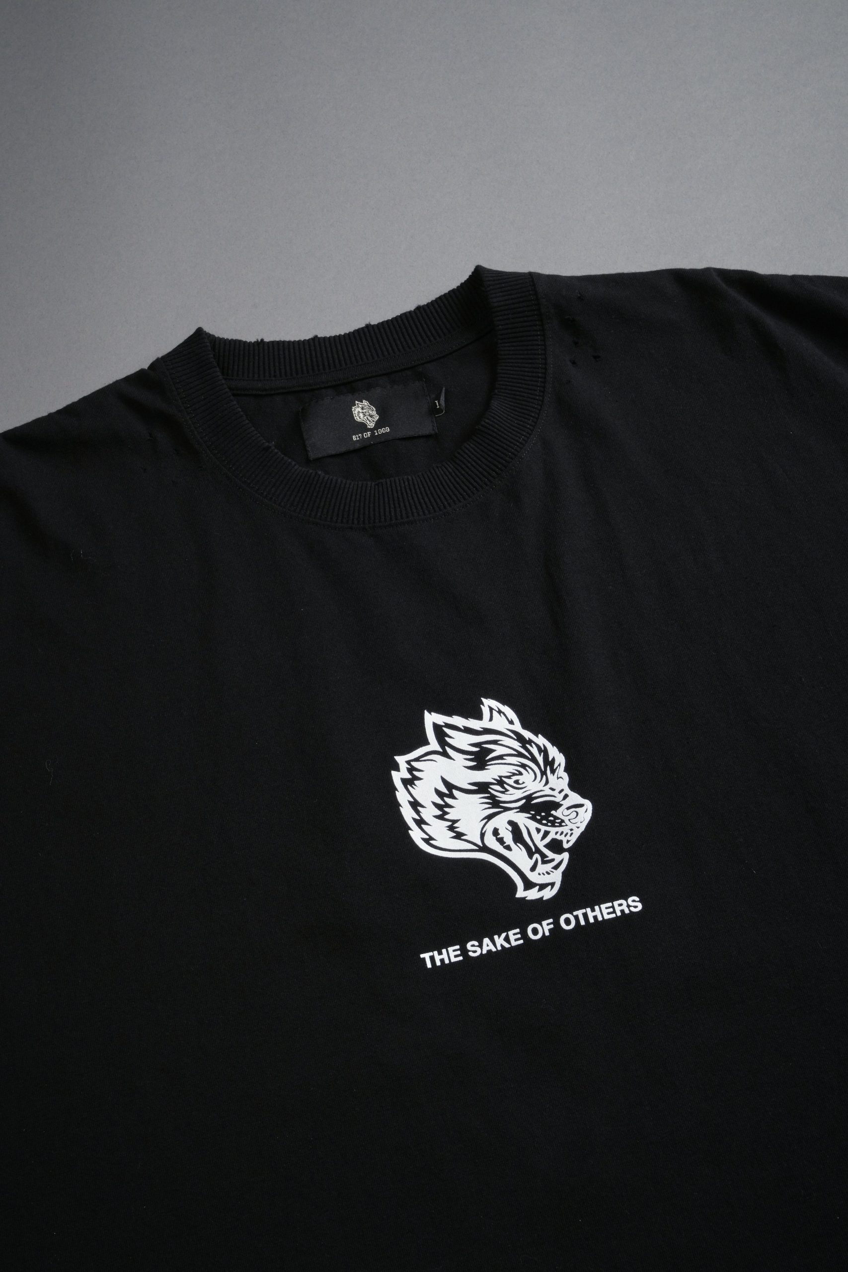 Holy Vow Distressed Grunge Cut-Off Mid-Length Raw Hem Tee in Black