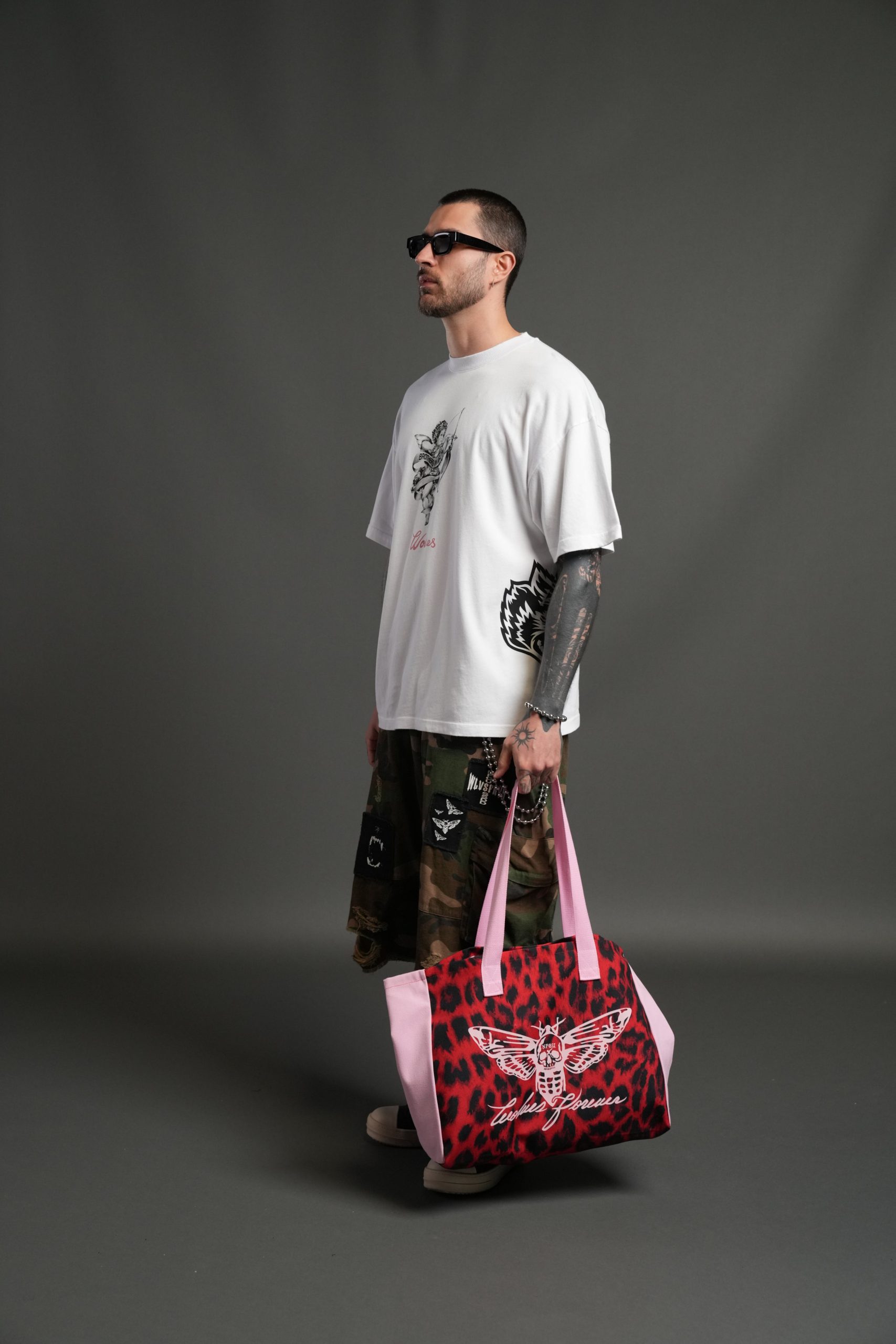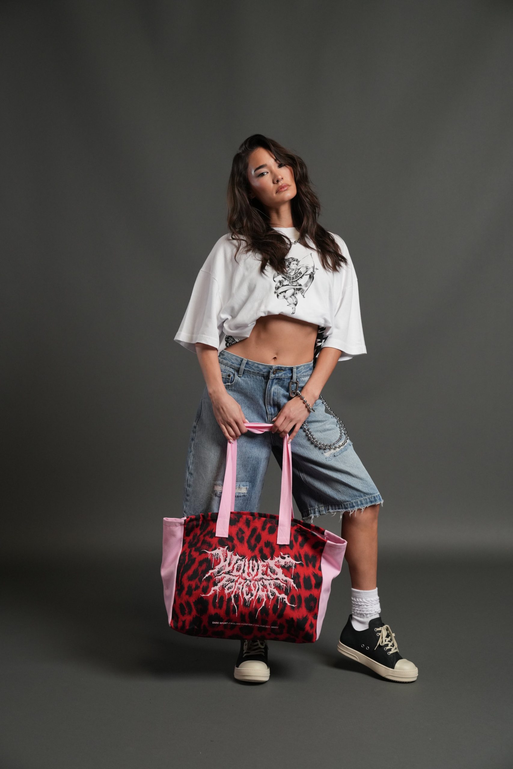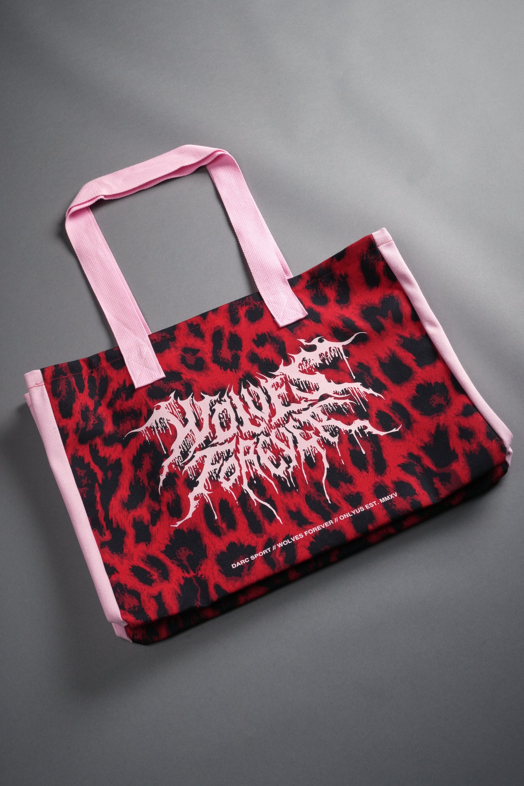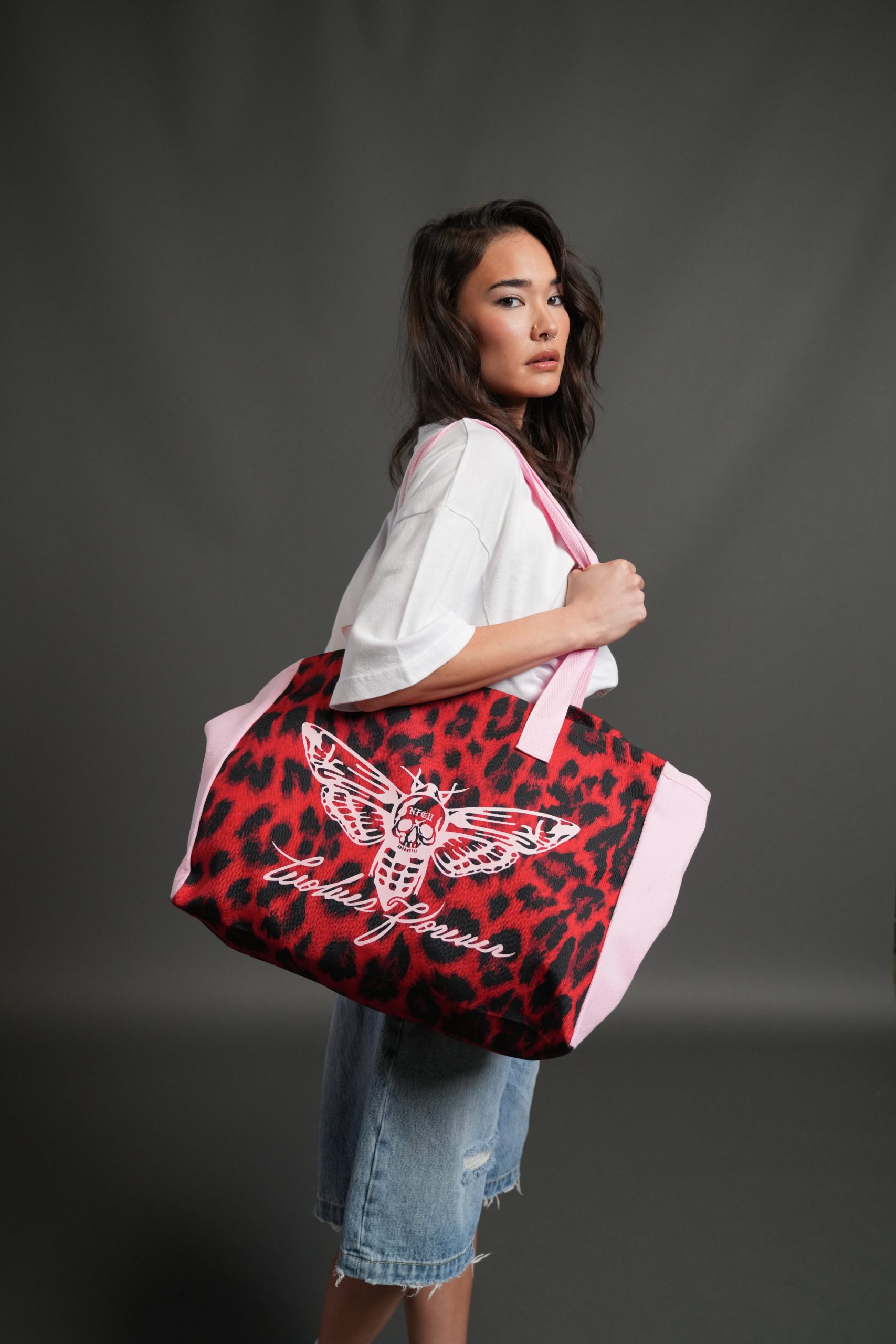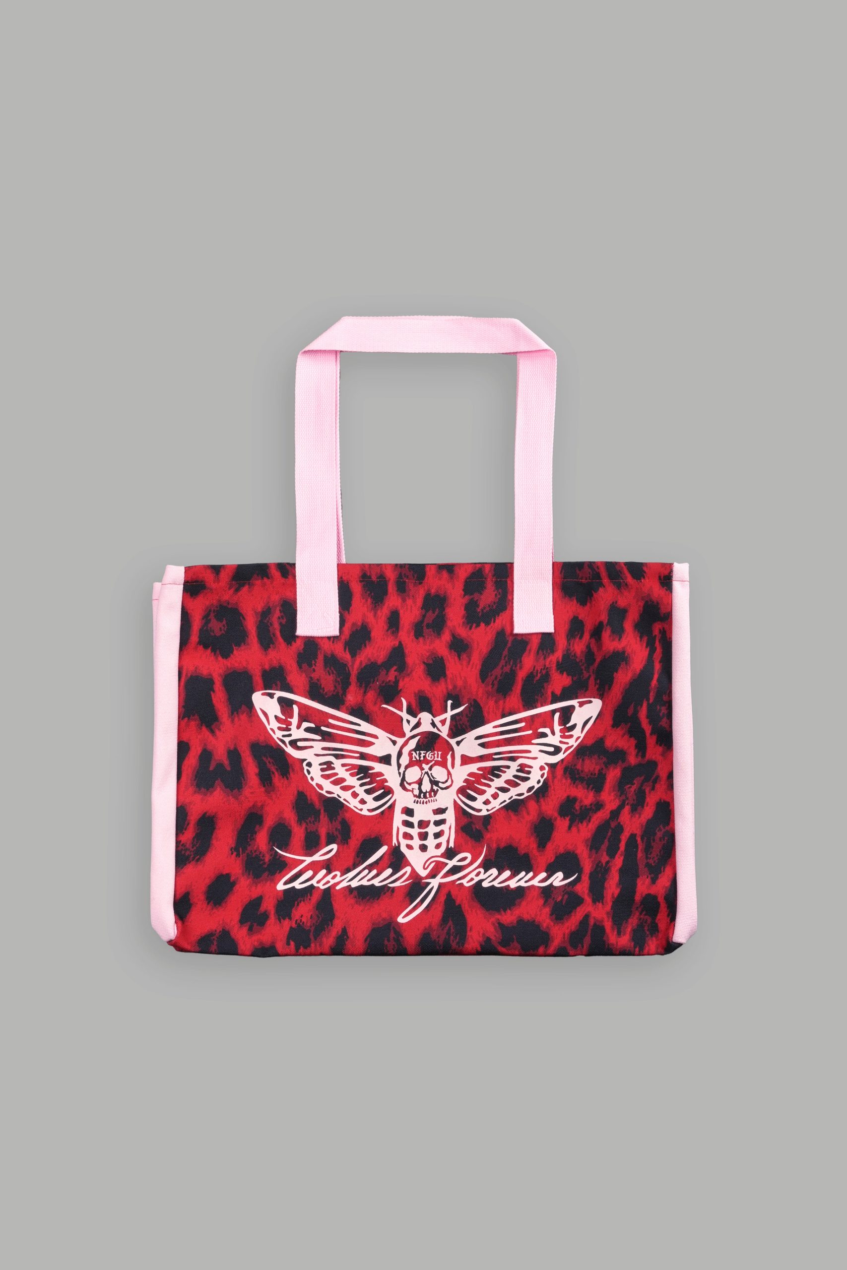 Moth Forever Canvas Tote in Red Leopard/Cloud Pink