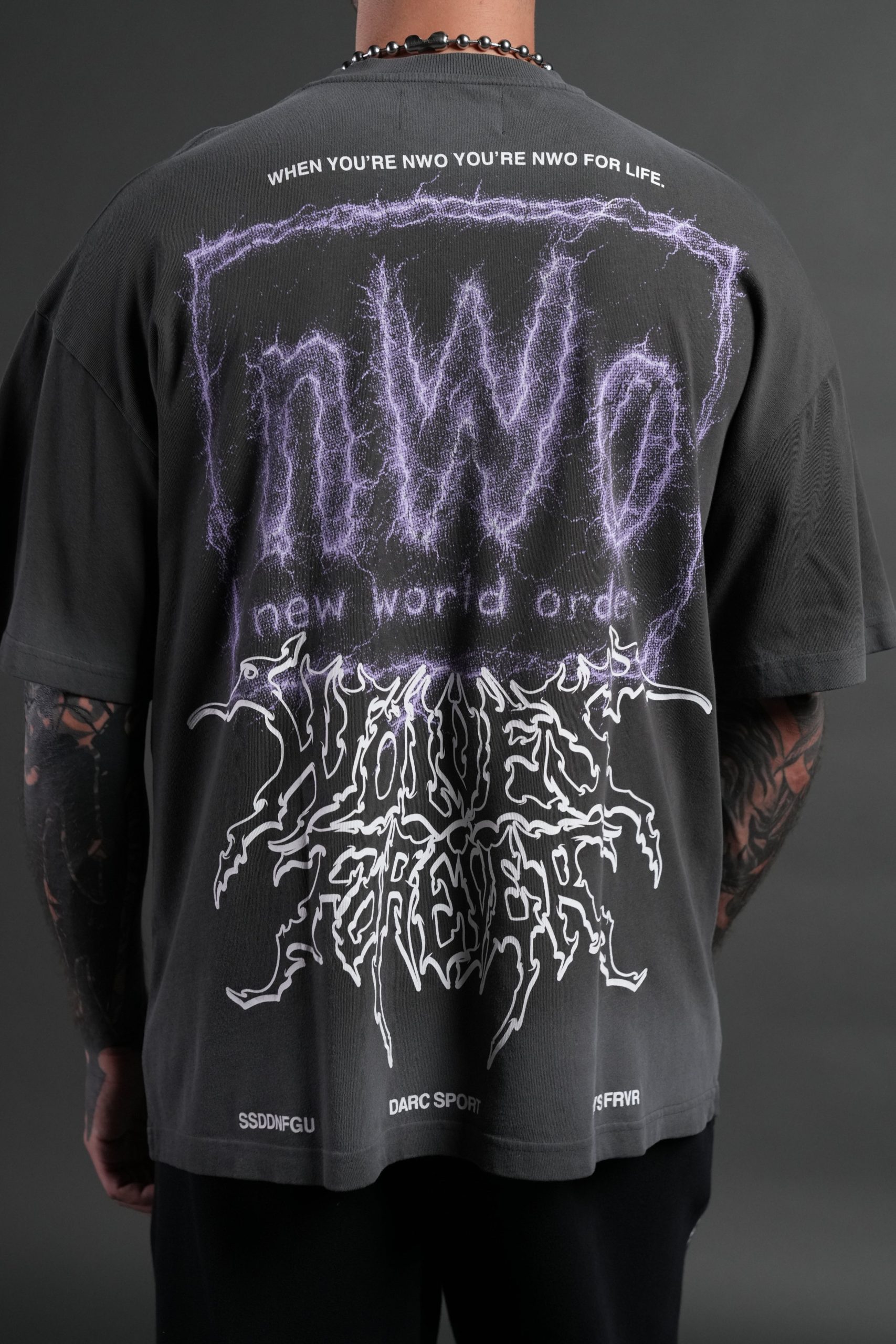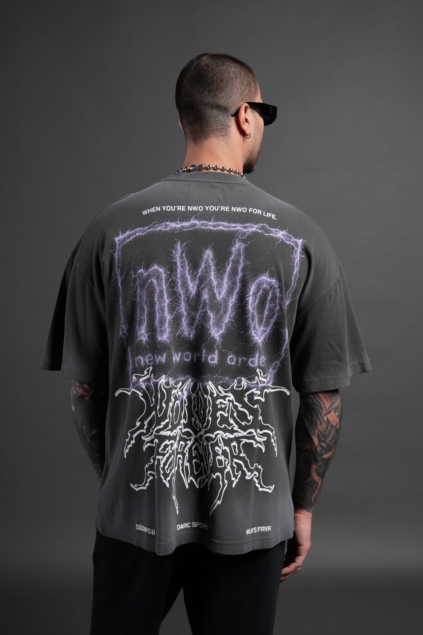 NWO Lightning Premium Oversized Tee in Wolf Gray Drift Wash