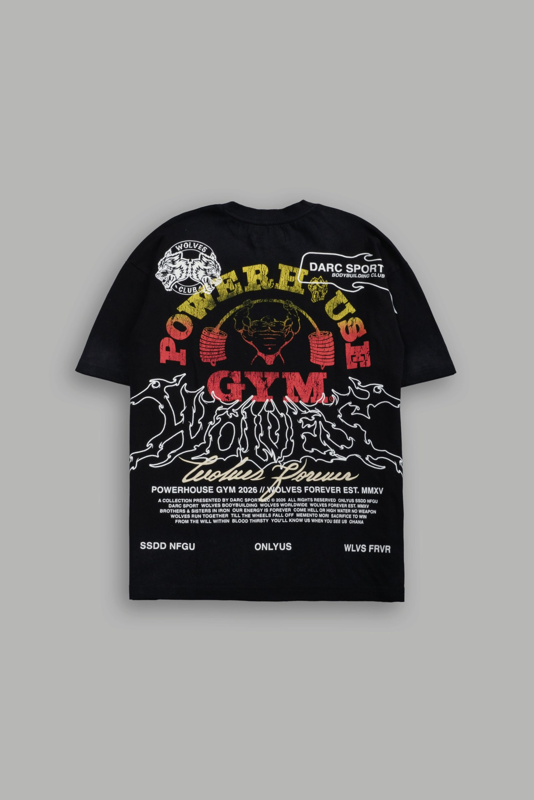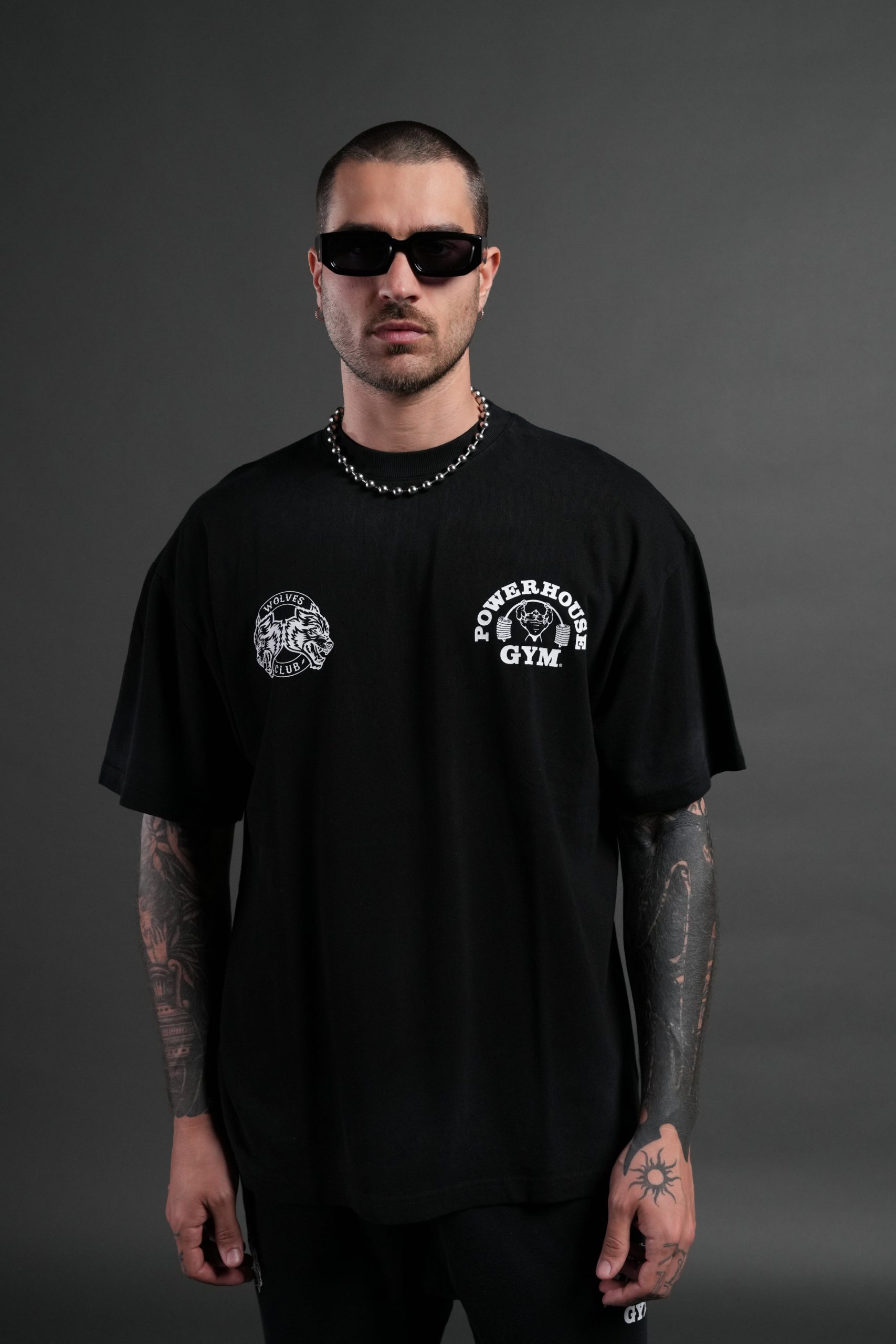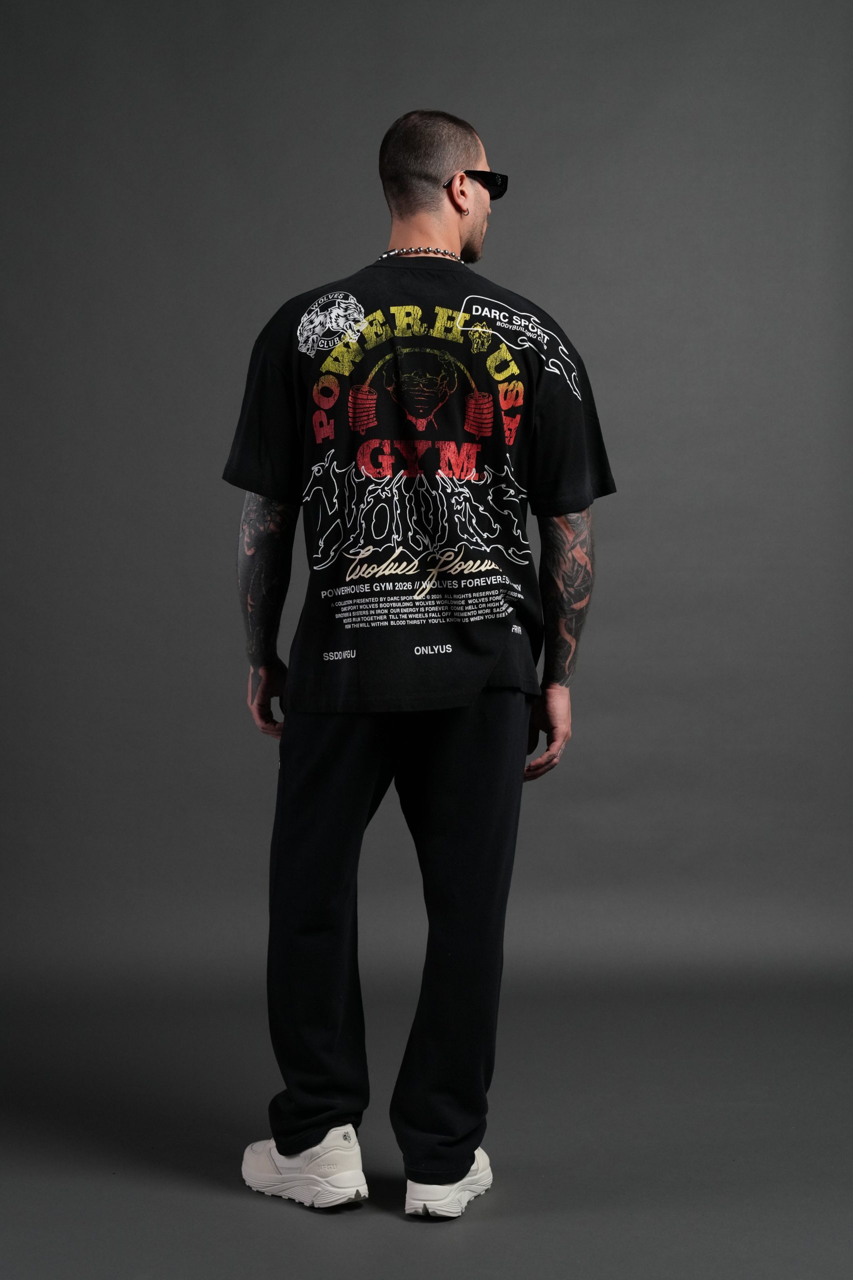 Powerhouse Hesh Premium Oversized Tee in Black Drift Wash