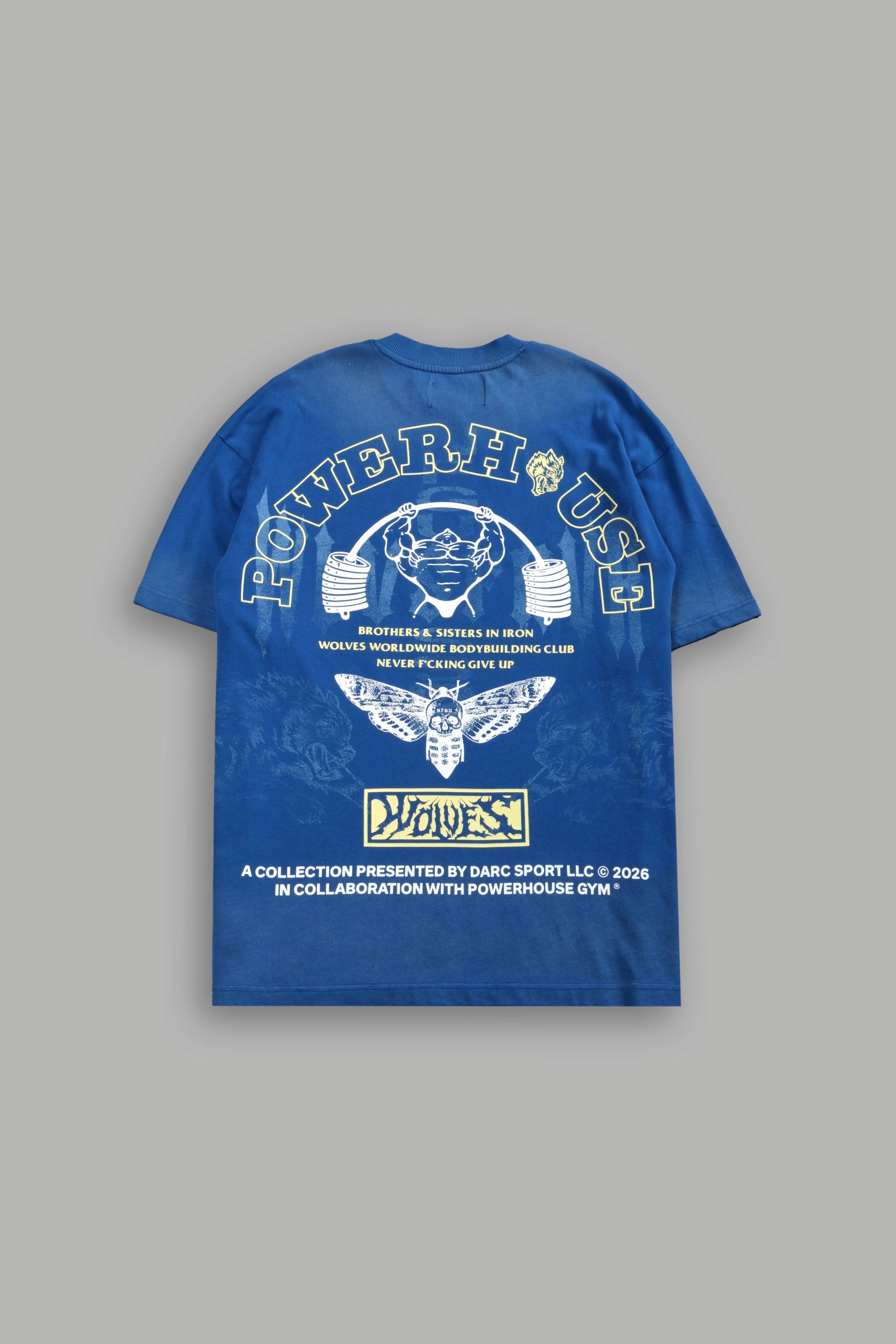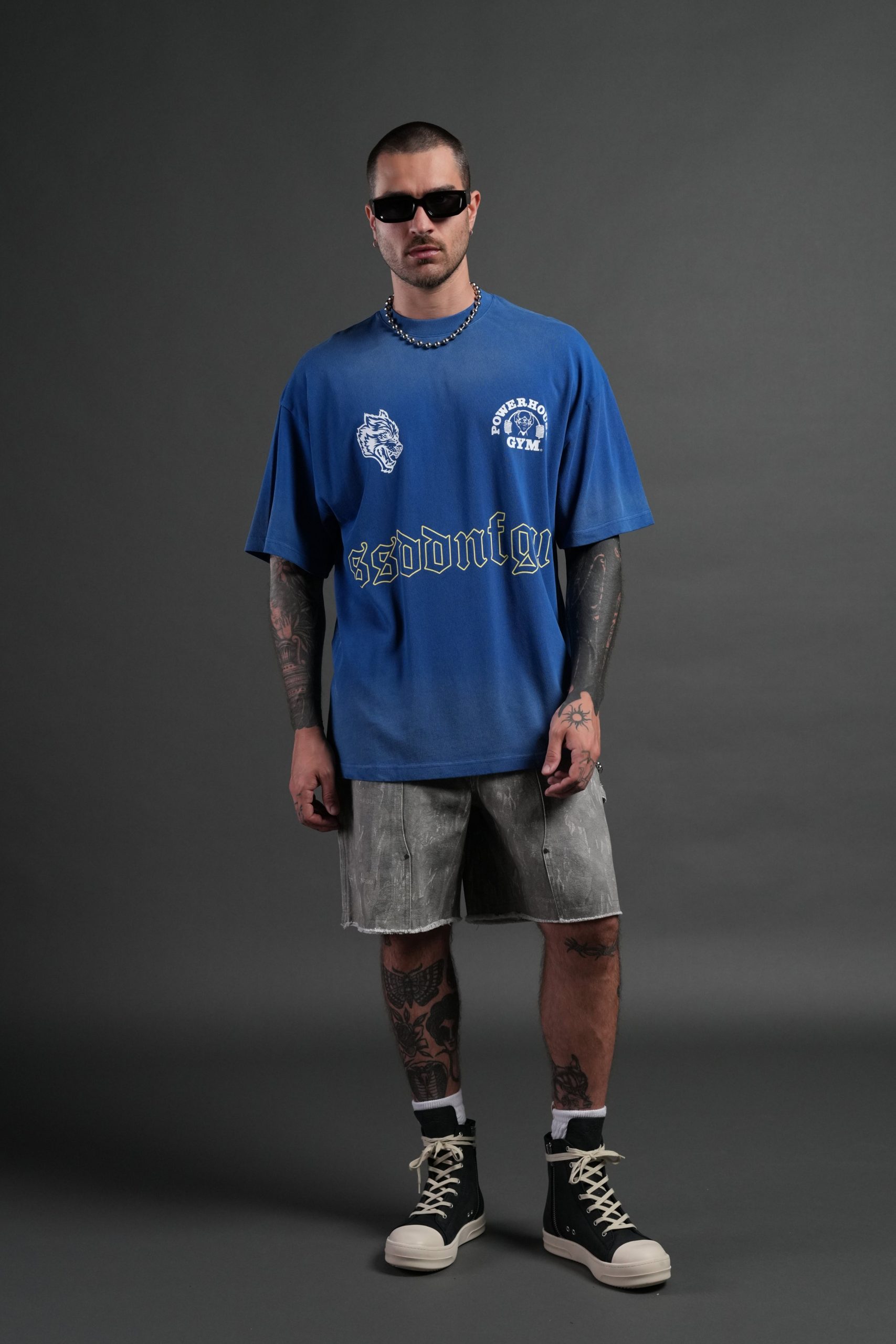 Powerhouse Moth Premium Oversized Tee in Darc Cobalt Drift Wash