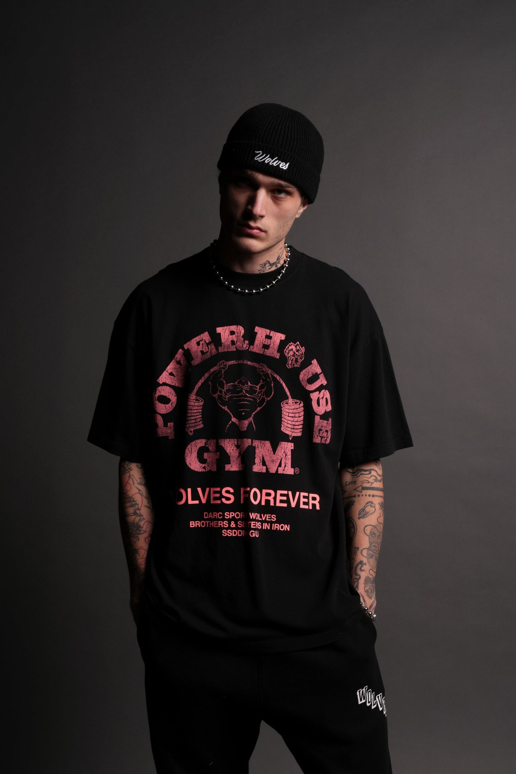 Powerhouse Of The Wolves V2Premium Oversized Tee in Black/Neon Pink