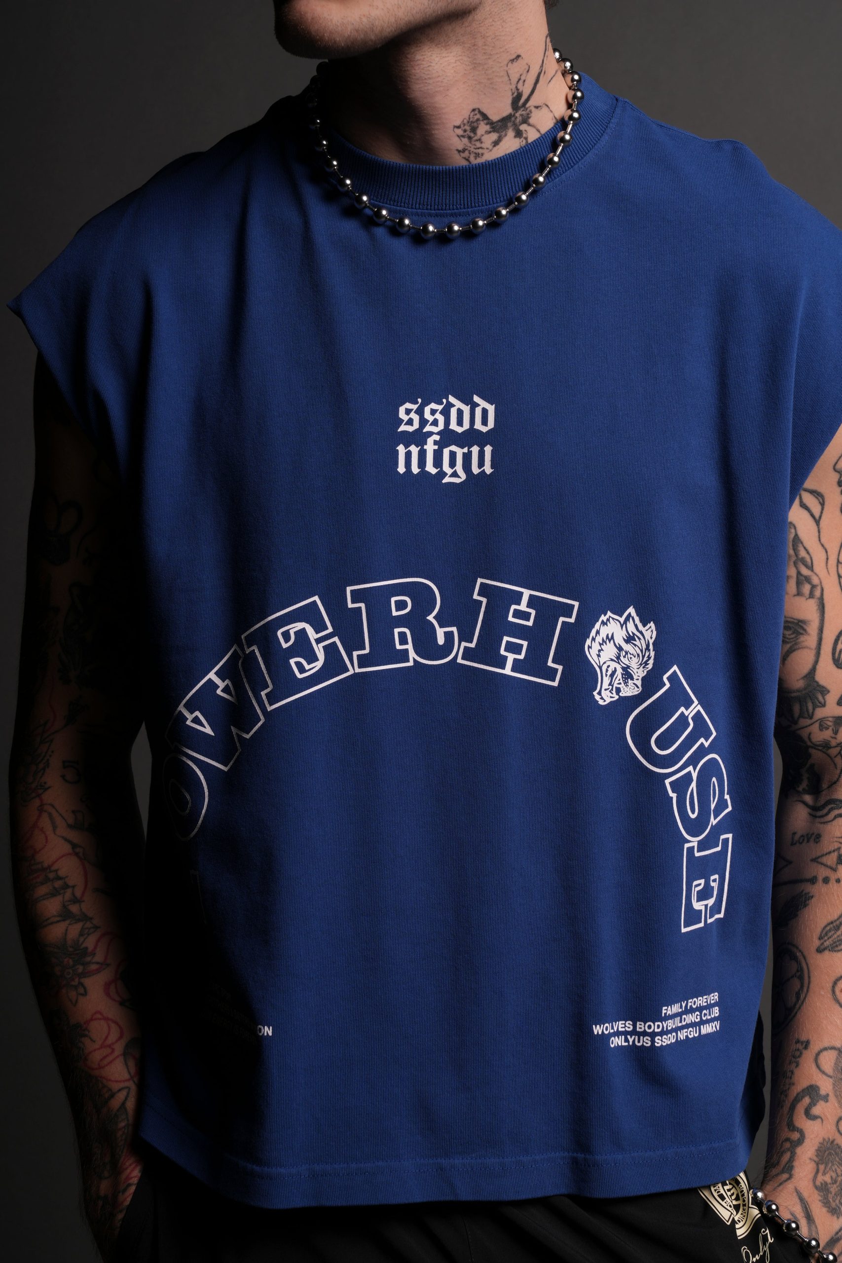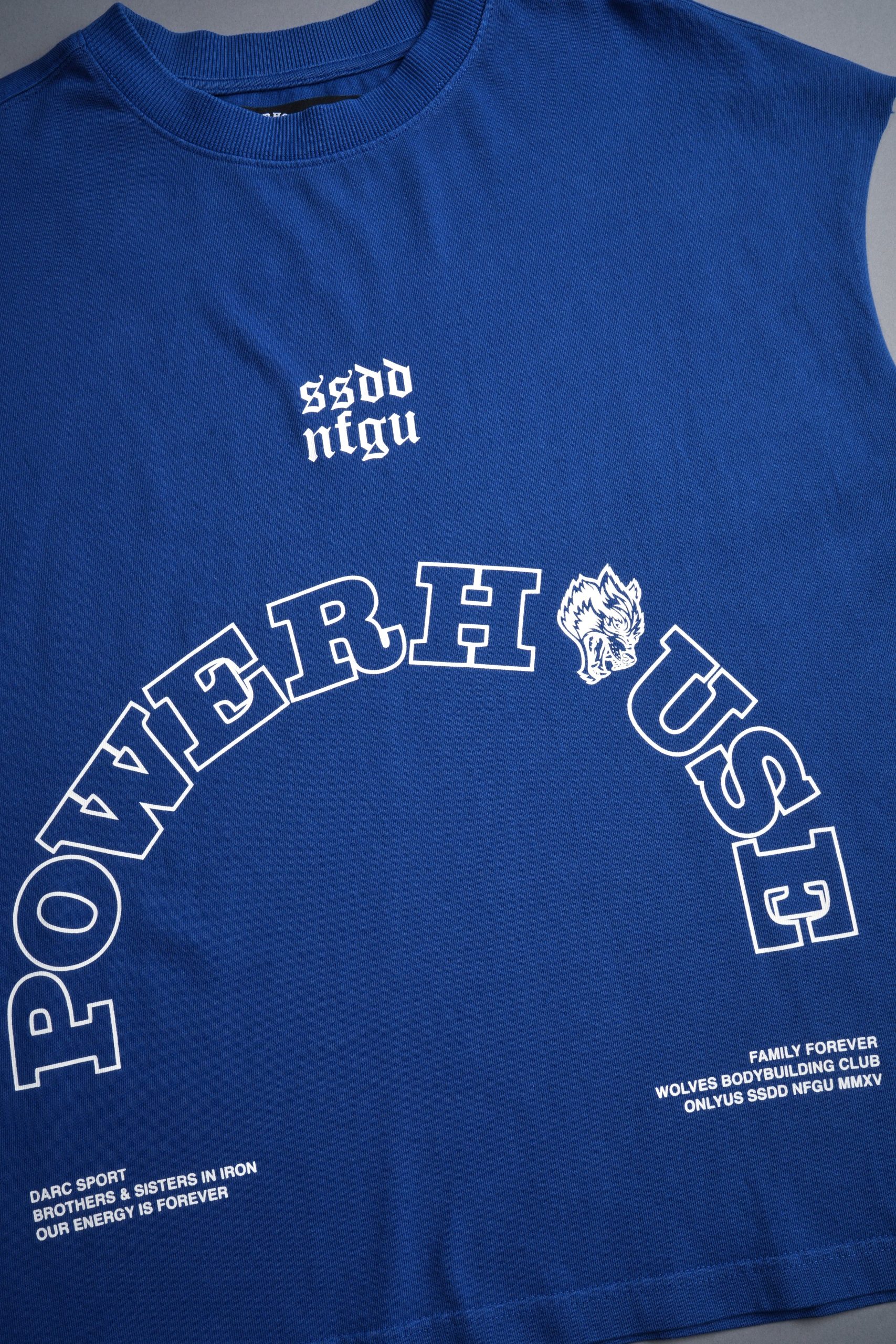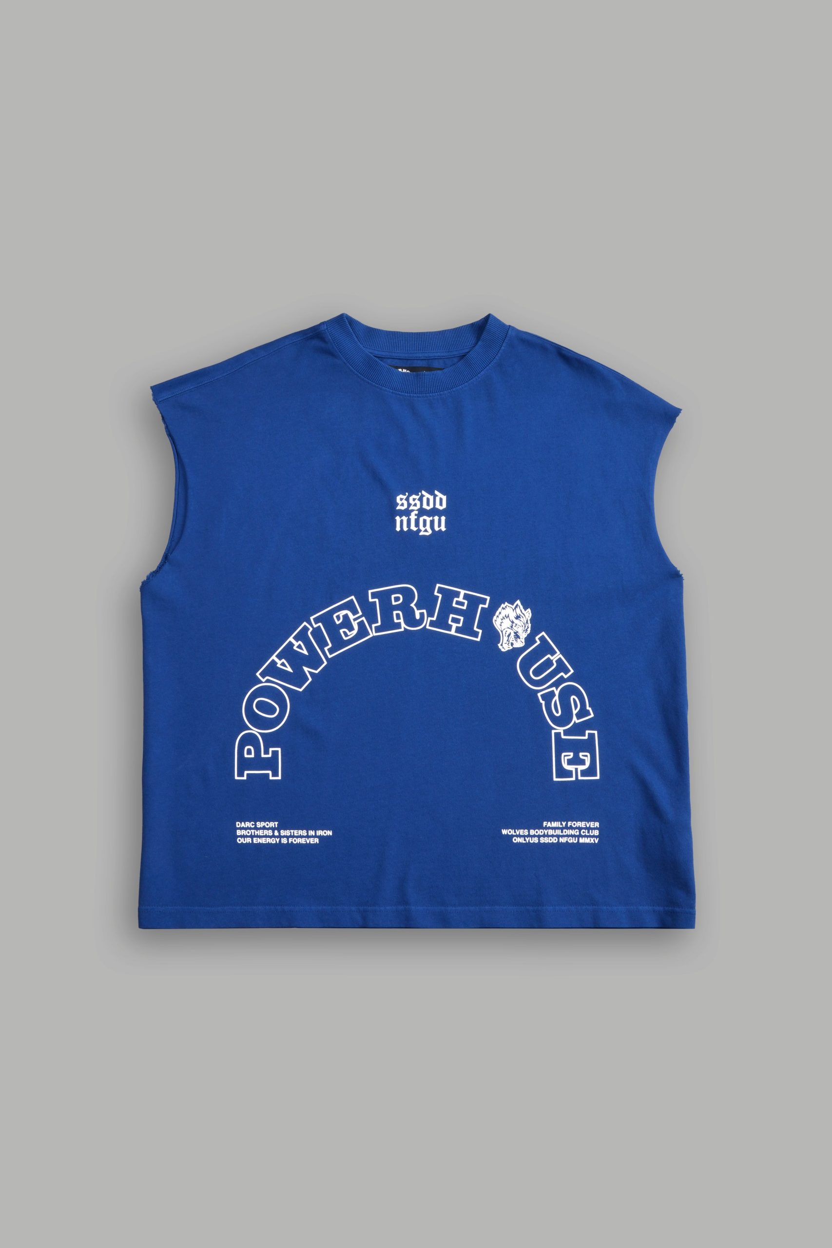 Powerhouse Wolves Premium Box Cut Muscle Tee in Darc Cobalt