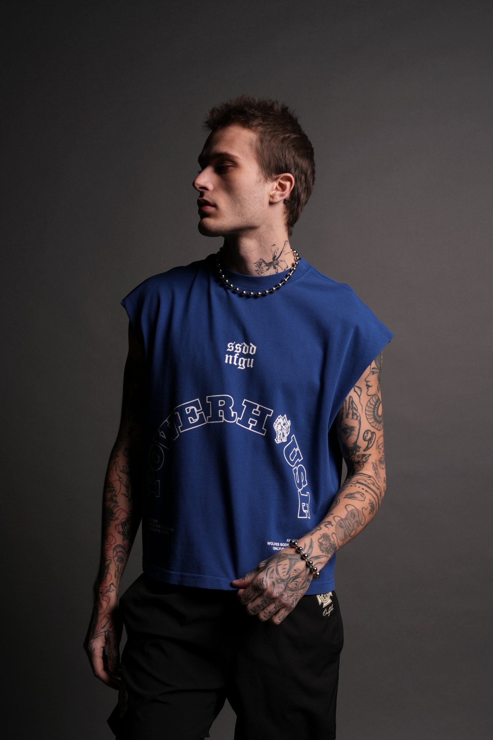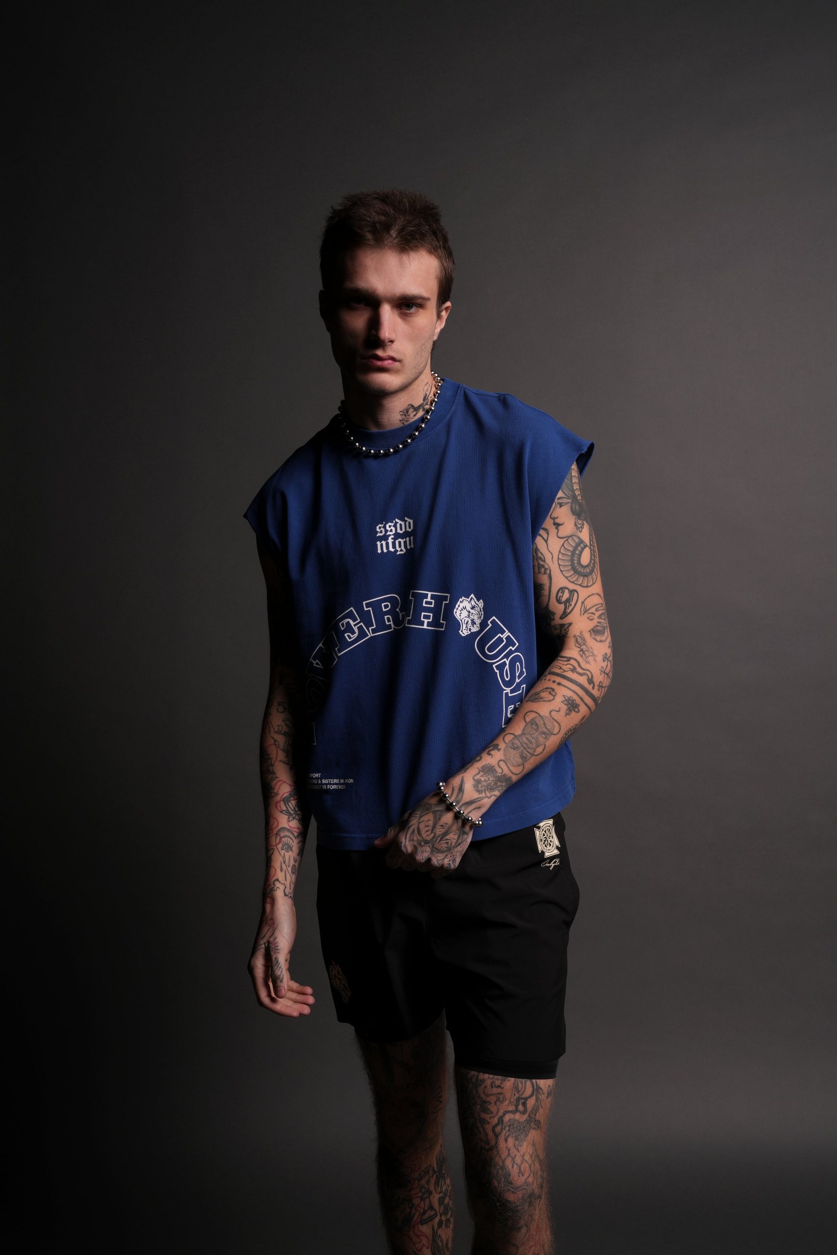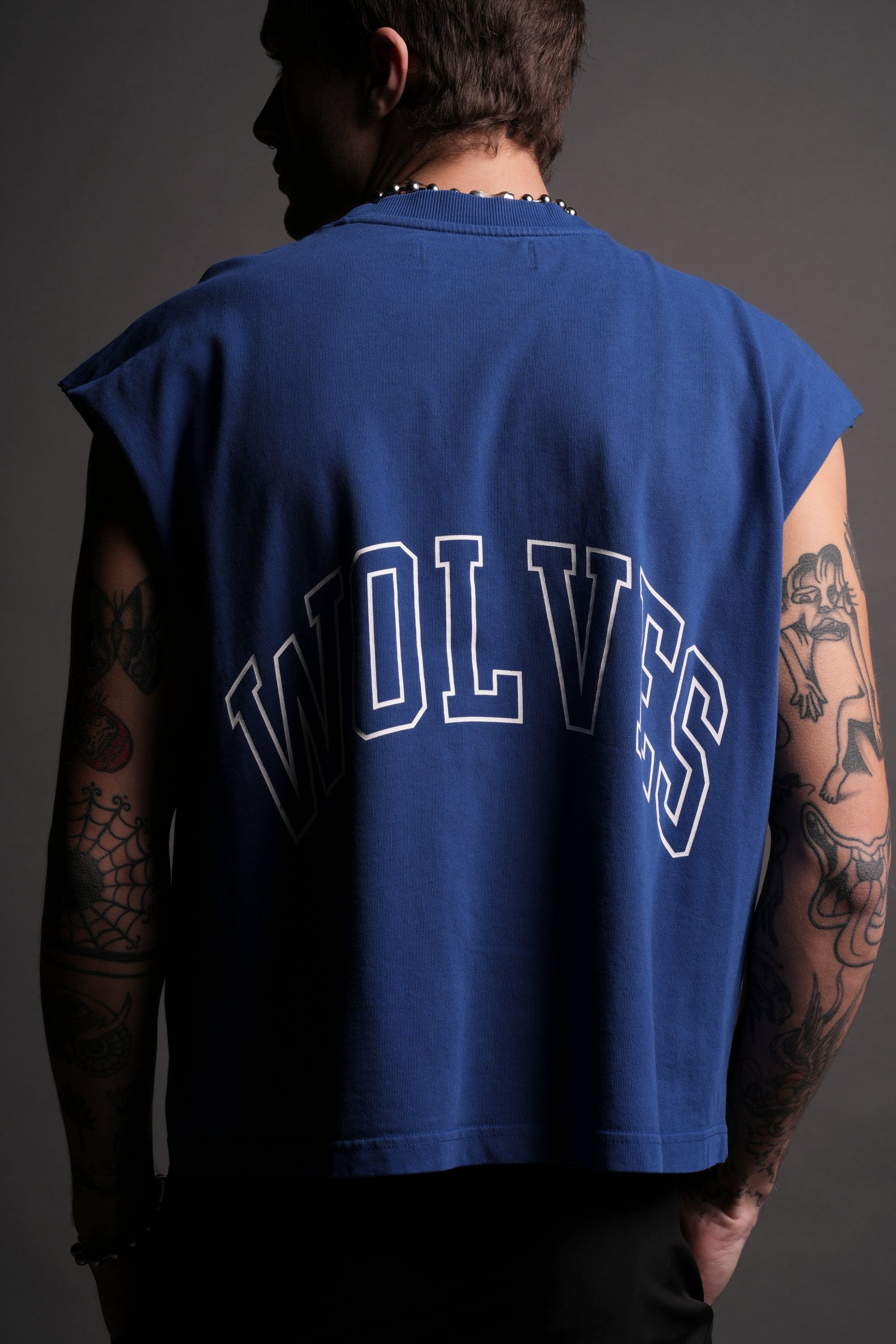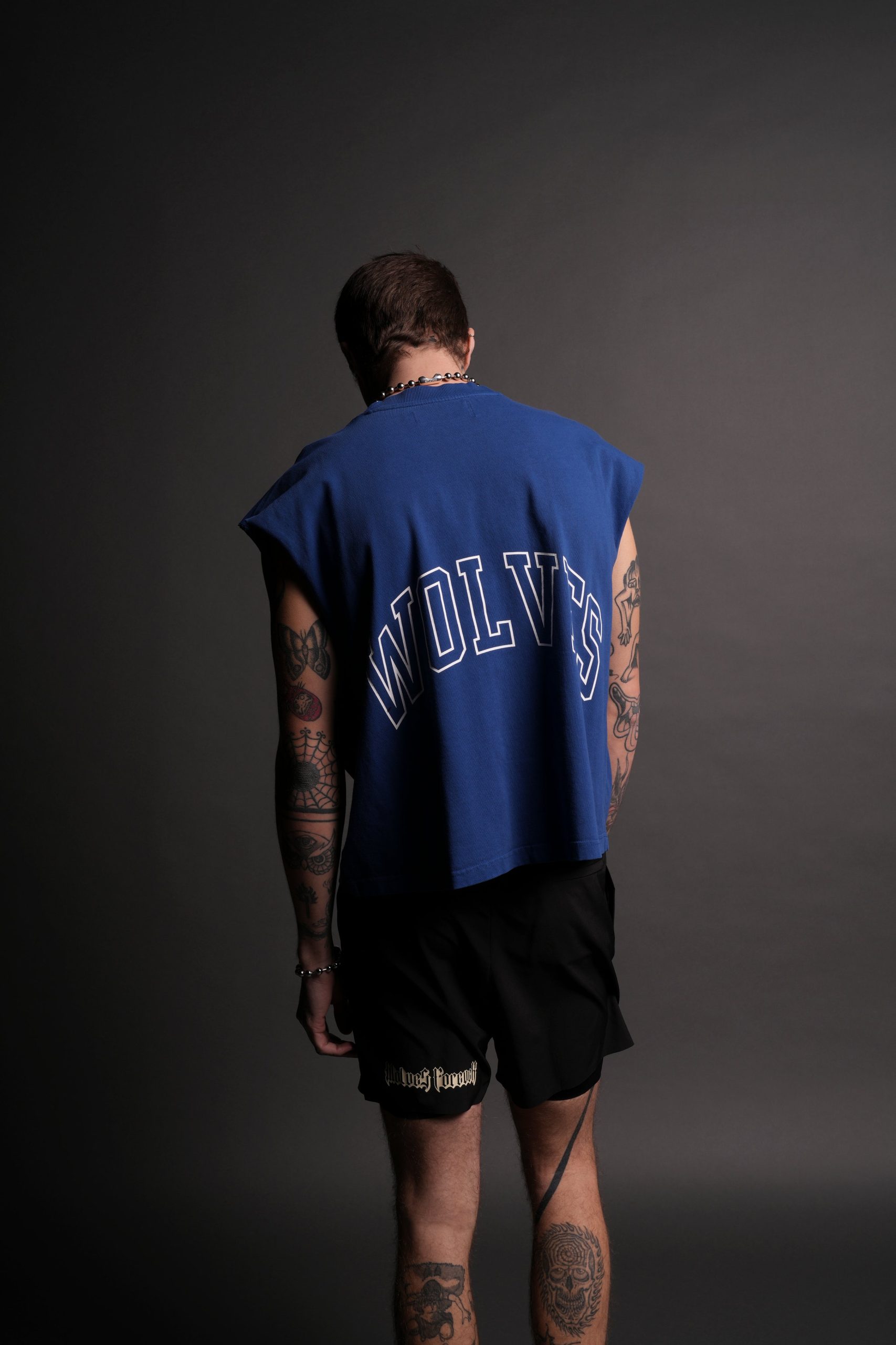 Powerhouse Wolves Premium Box Cut Muscle Tee in Darc Cobalt