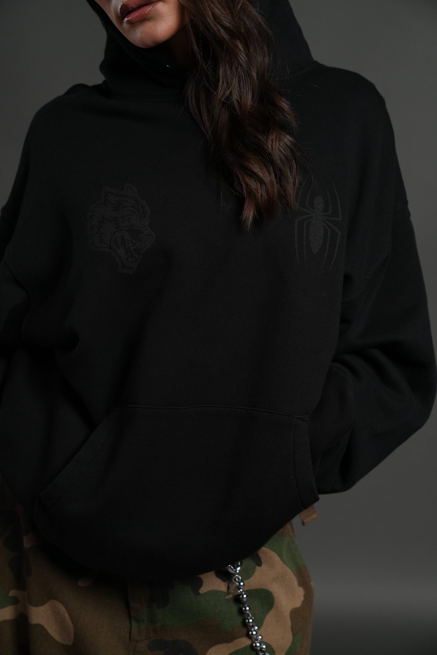 Be the first to review “Webs and Shadows Pierce Hoodie in Black”