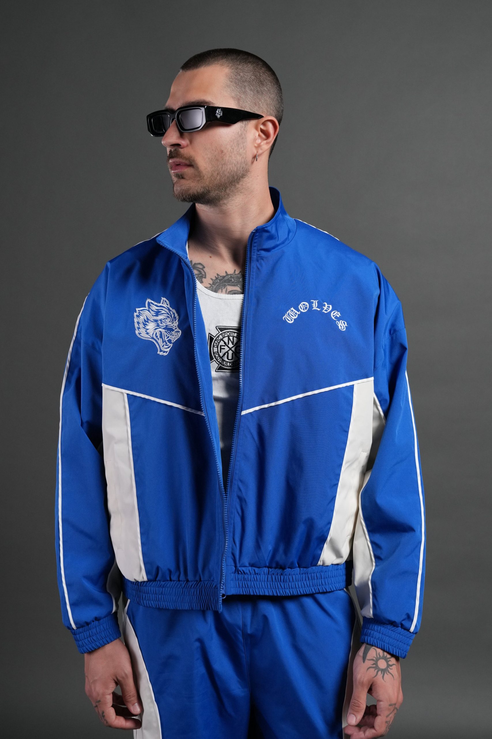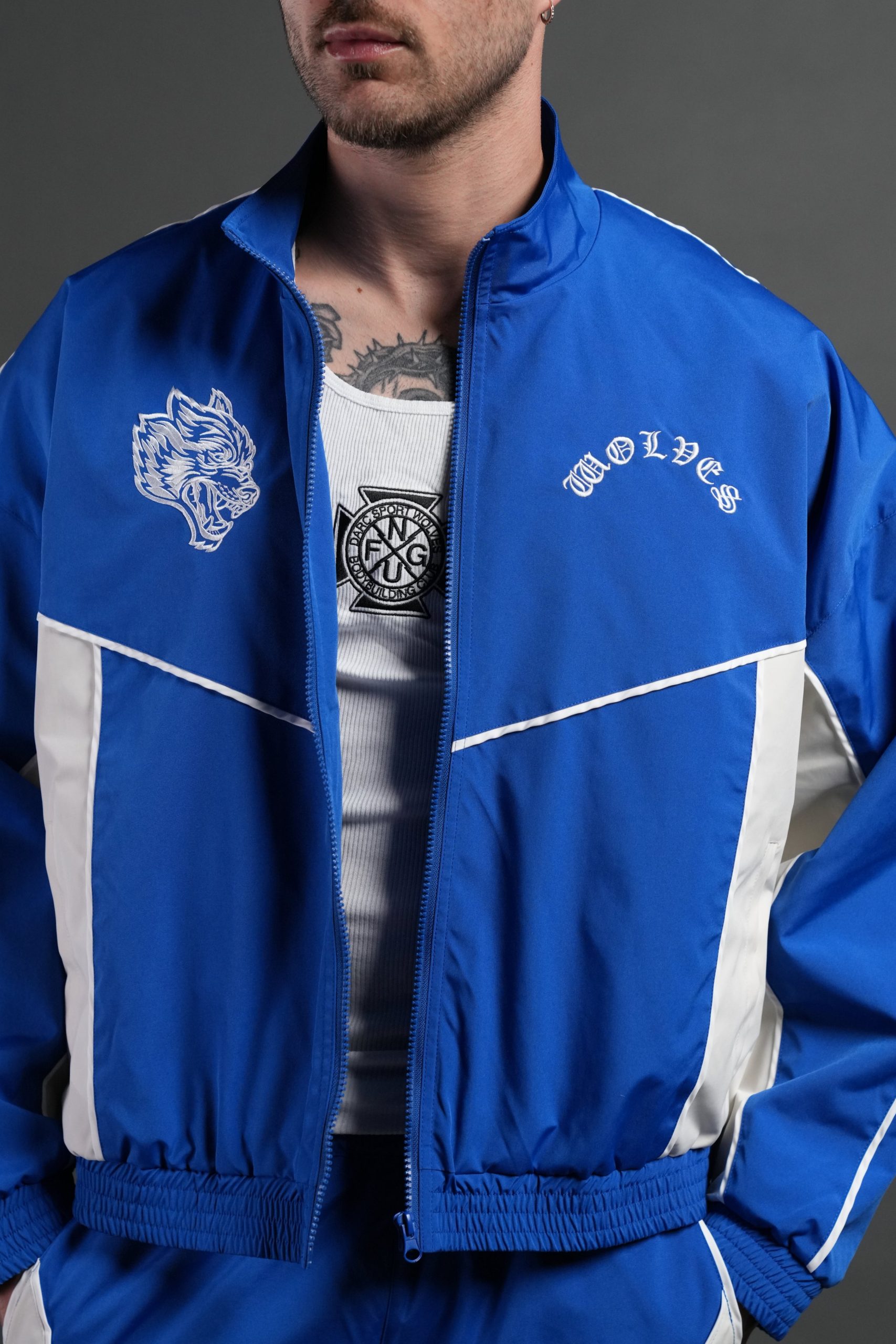 Wolf Chopper Quinn Track Jacket in Darc Cobalt/Cream