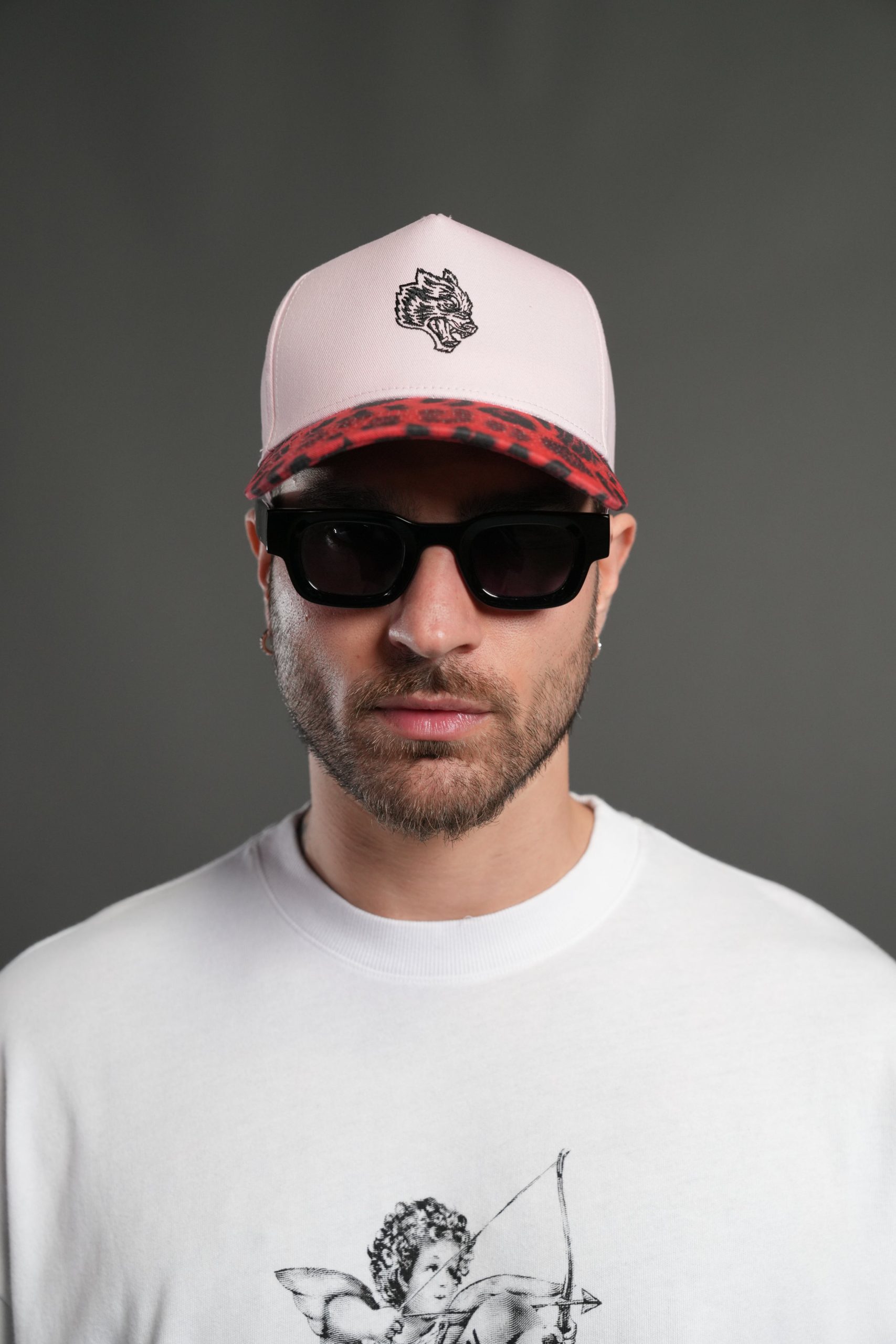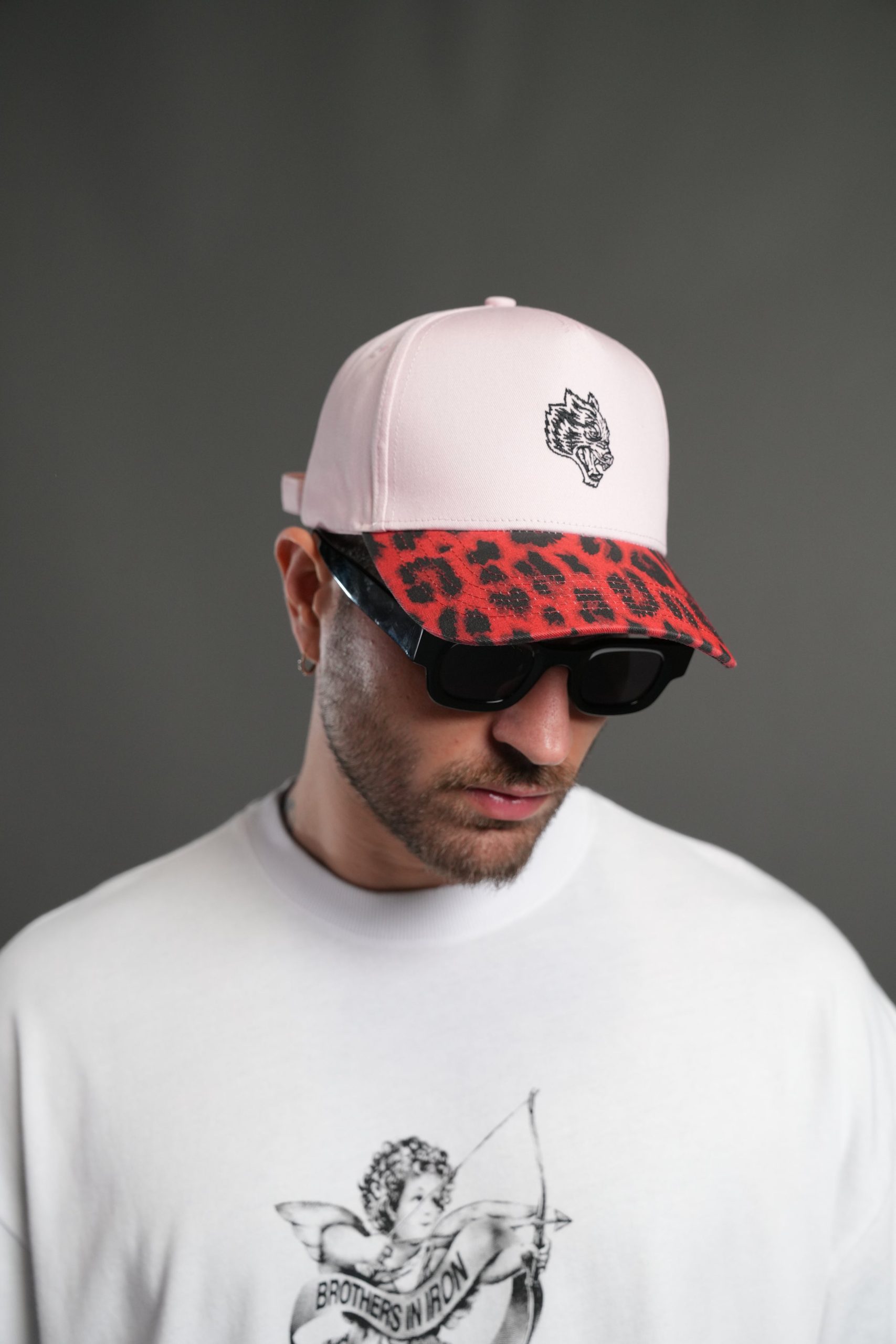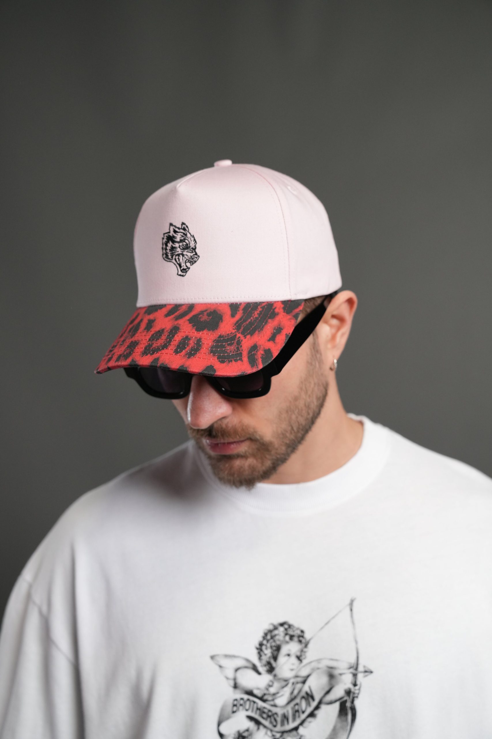 Wolf Head 5 Panel Hat in Cloud Pink/Red Leopard