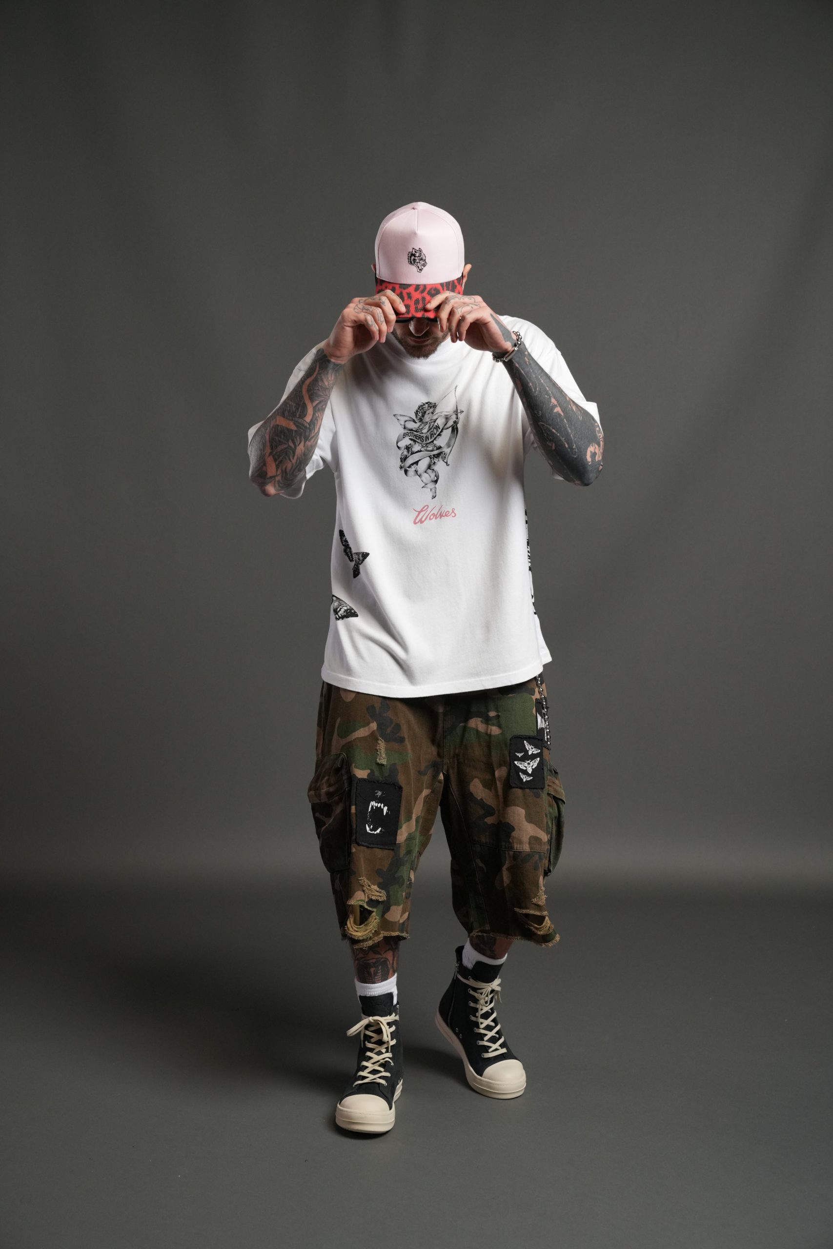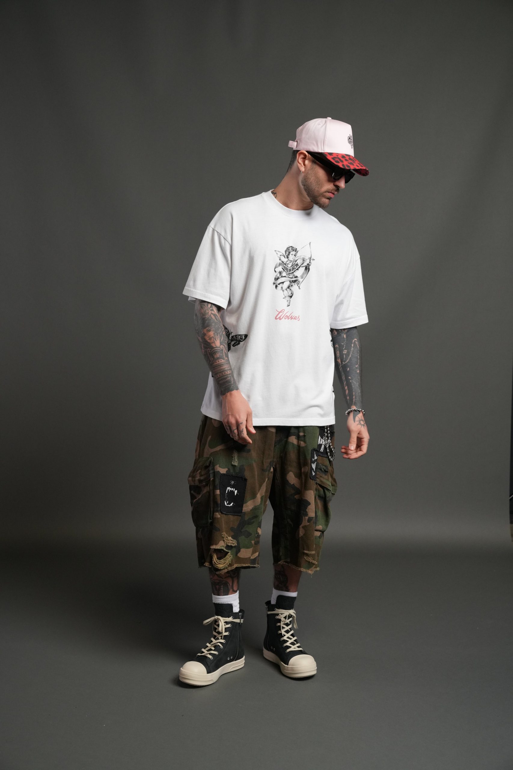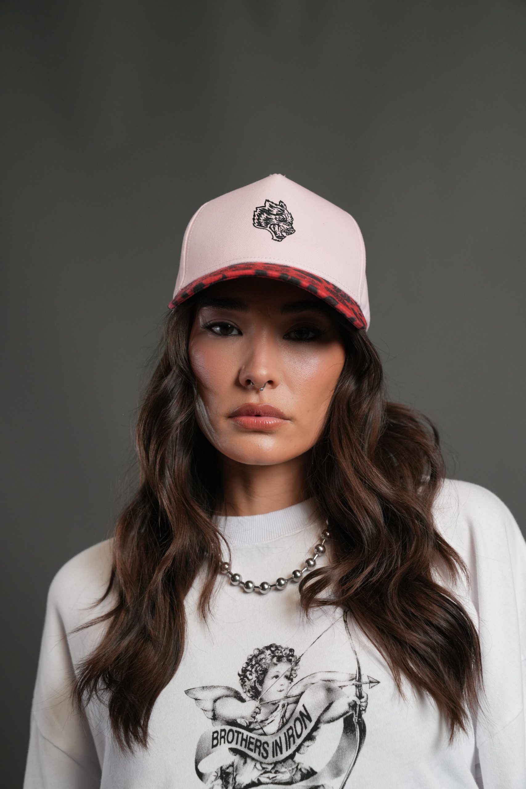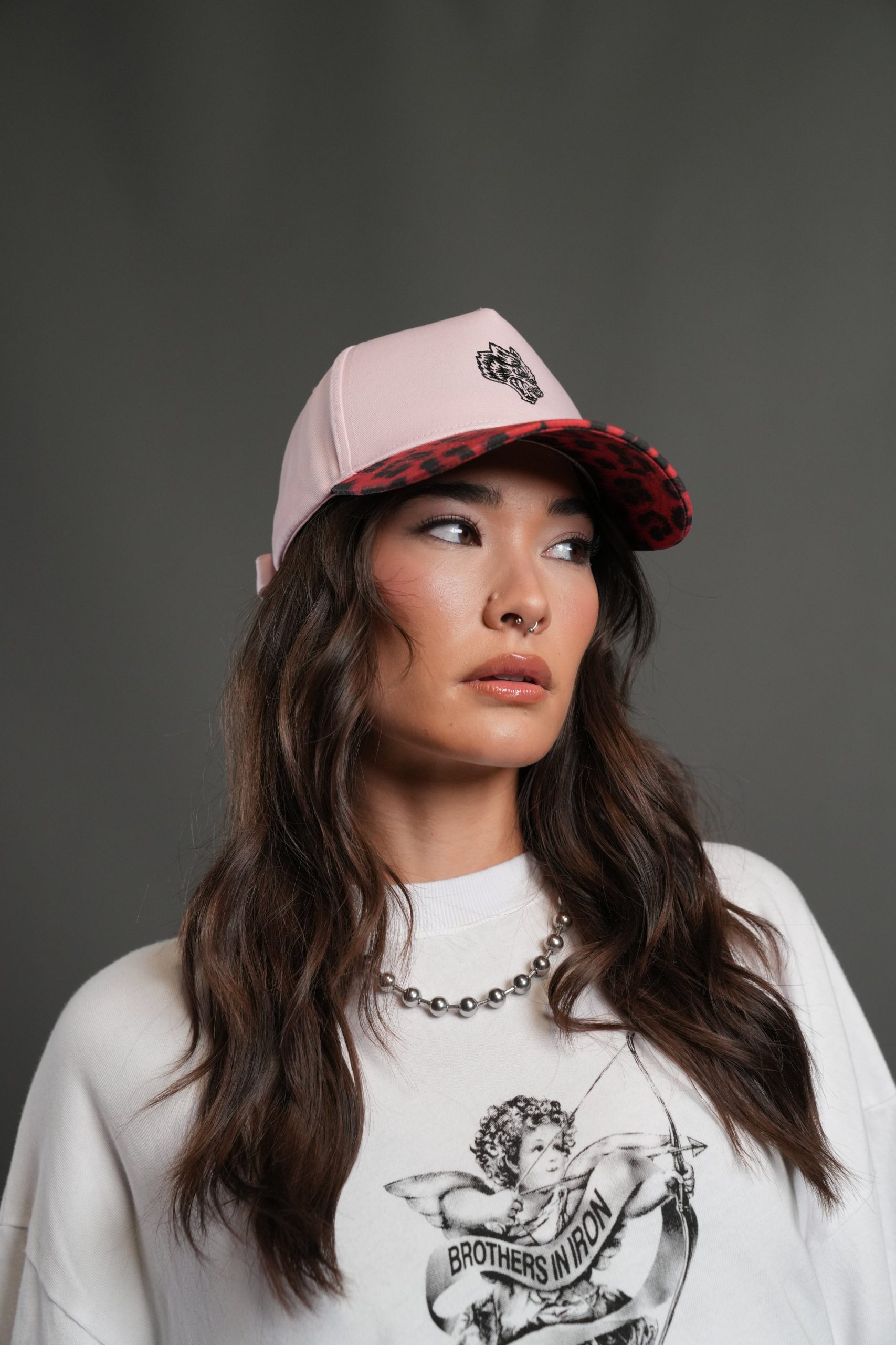 Wolf Head 5 Panel Hat in Cloud Pink/Red Leopard
