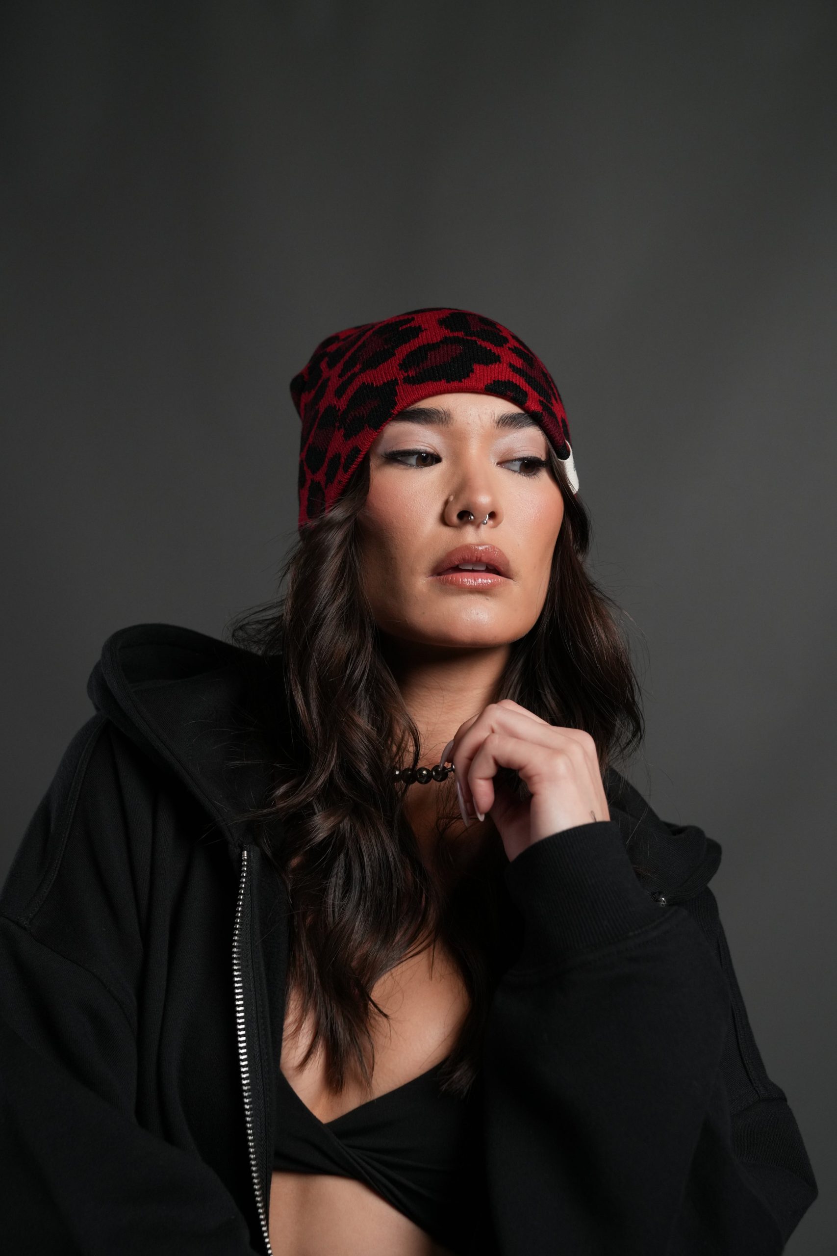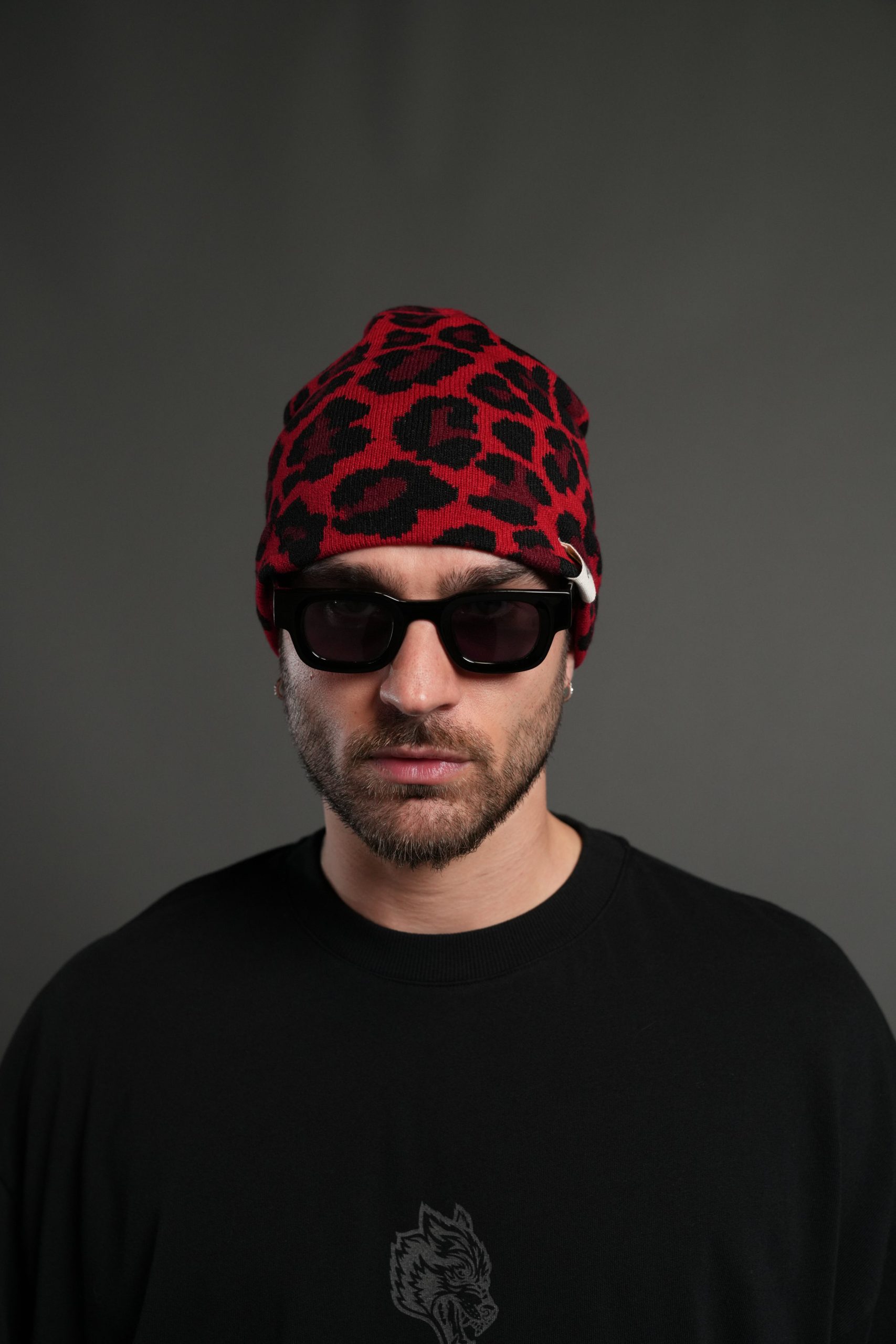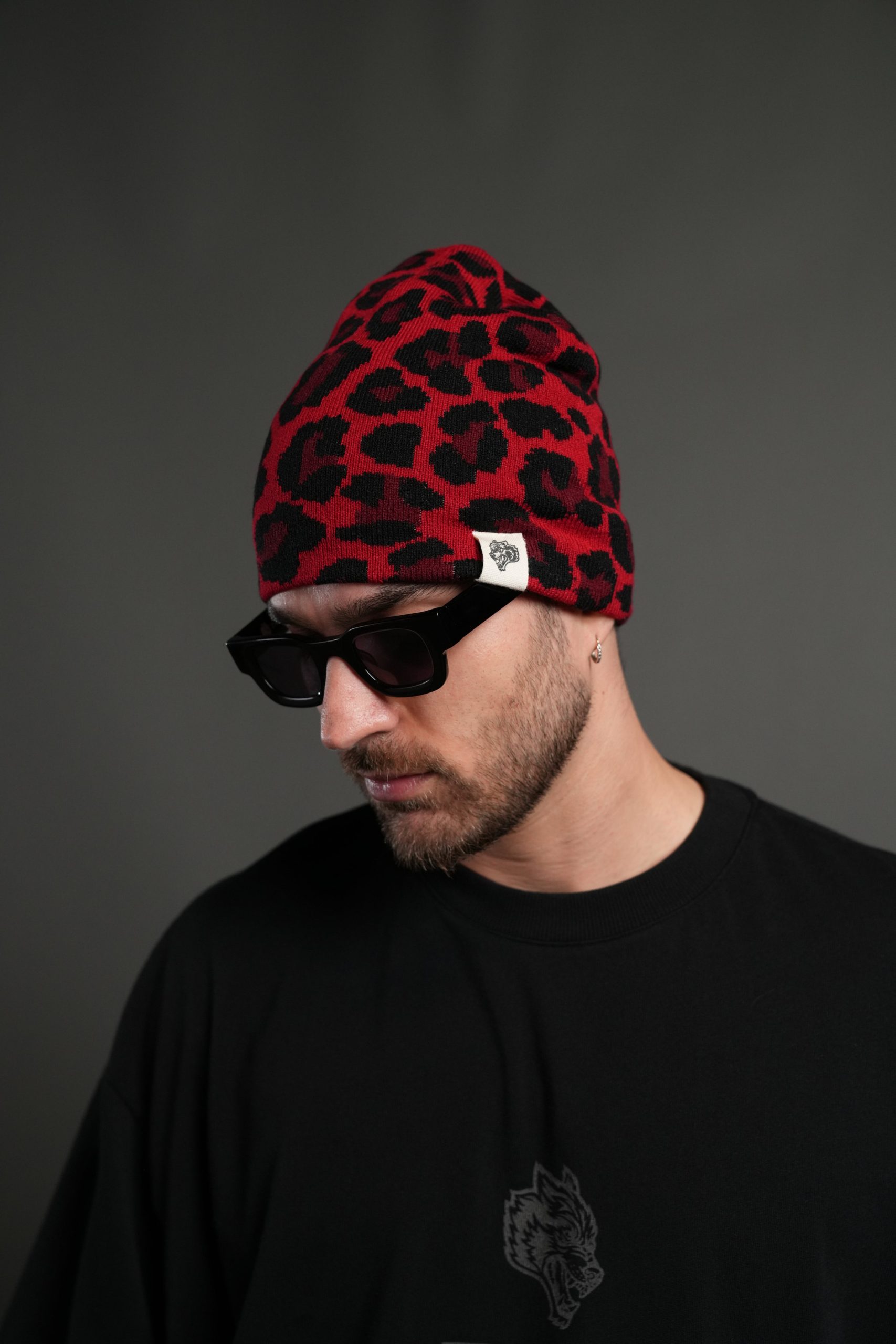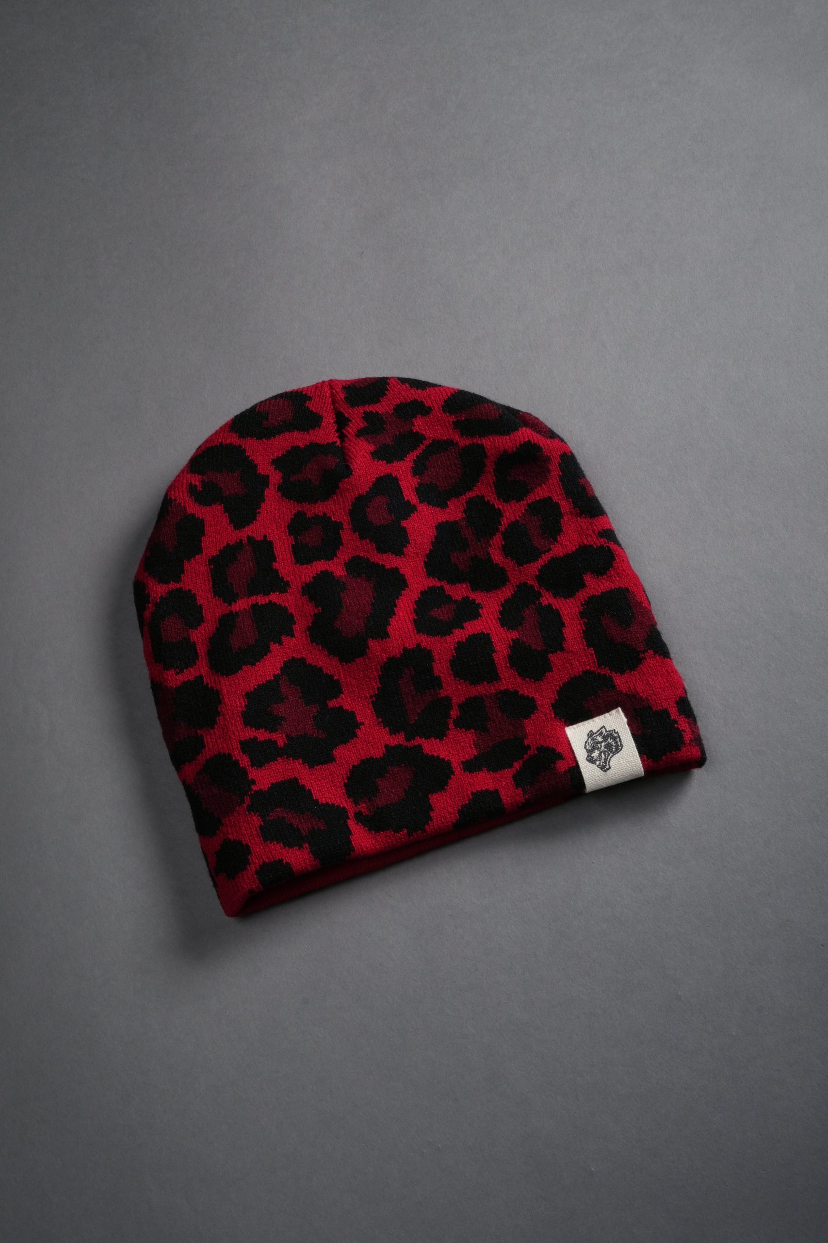 Wolf Patch V2 Cap Beanie in Red Leopard