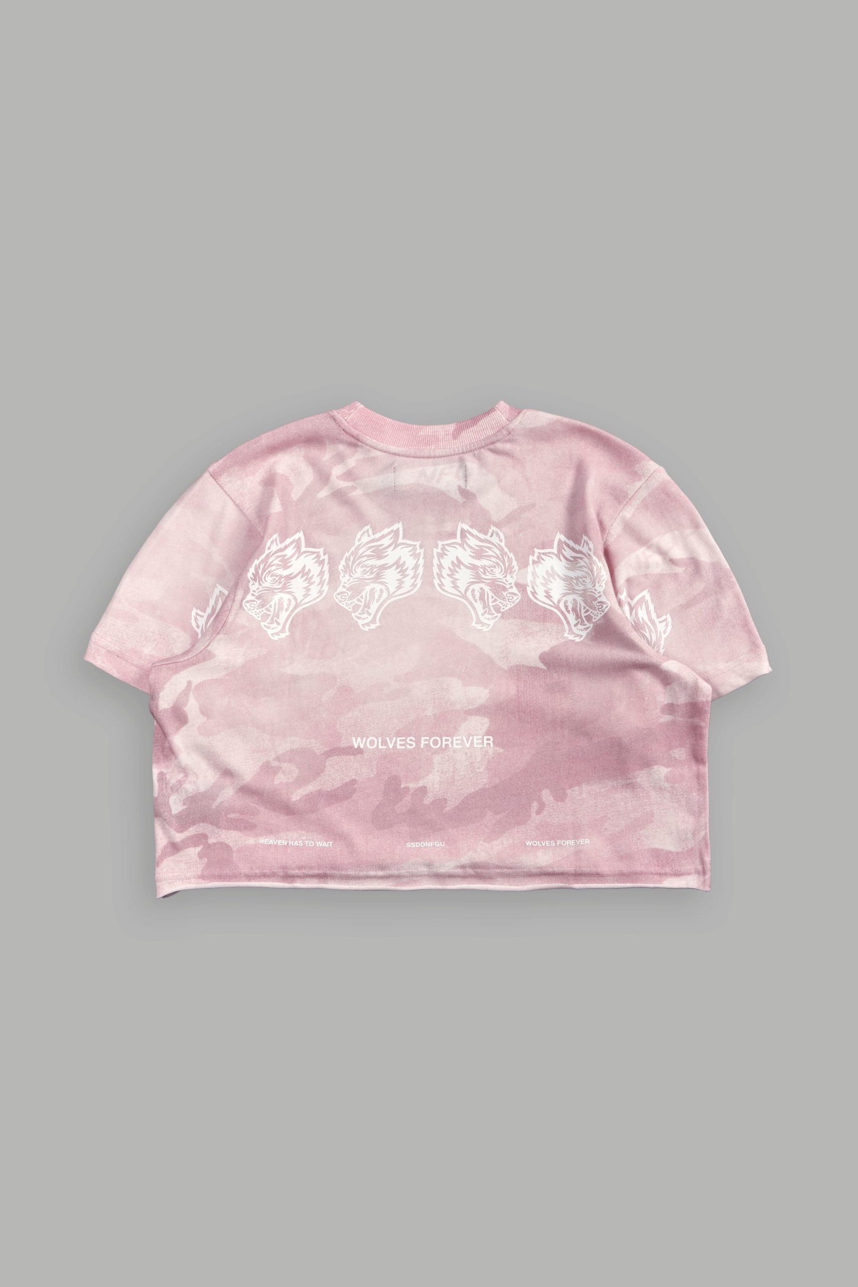 Be the first to review “Wolves Have Your Back Premium Oversized Cropped Tee in Blush Vintage Woodland Camo”