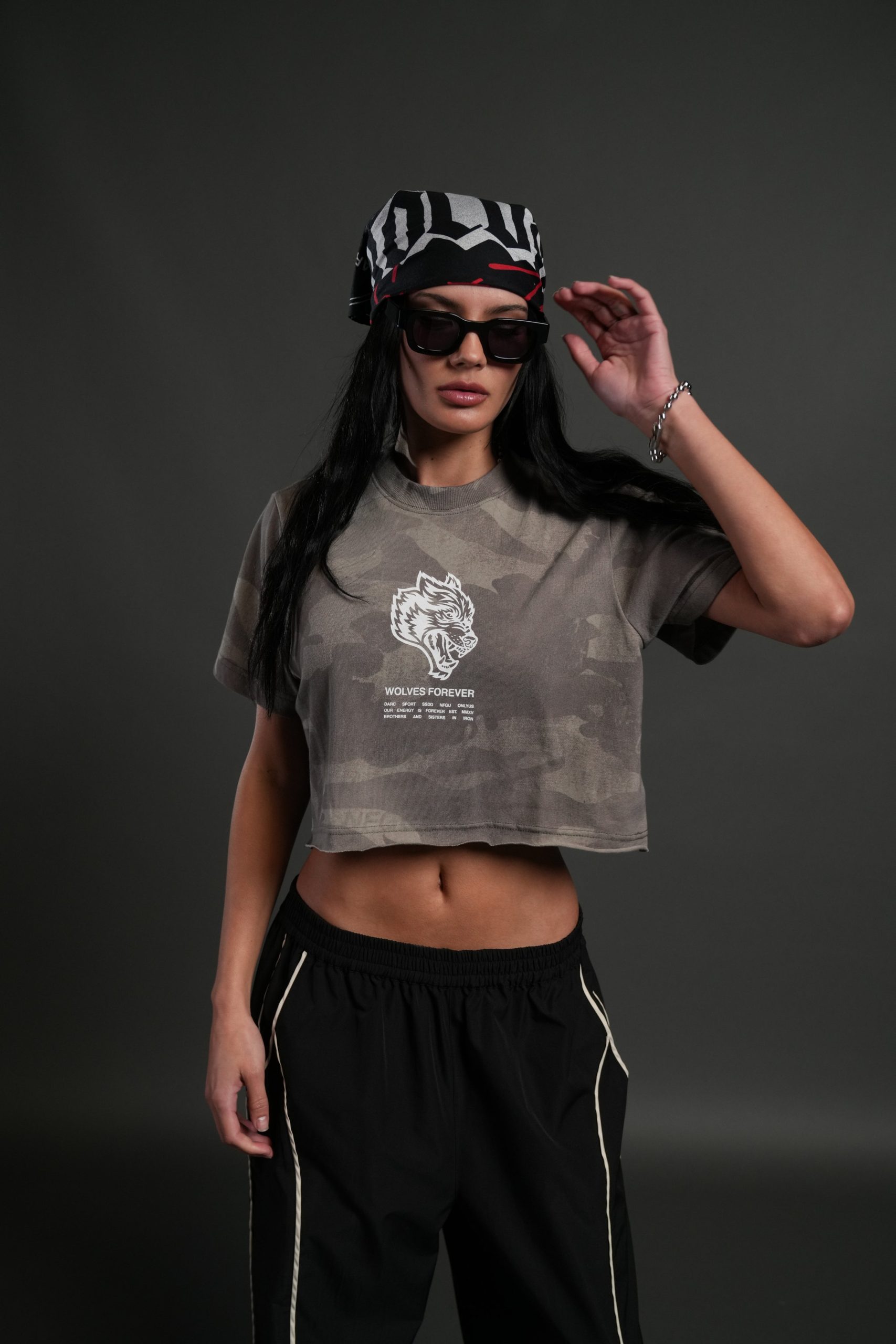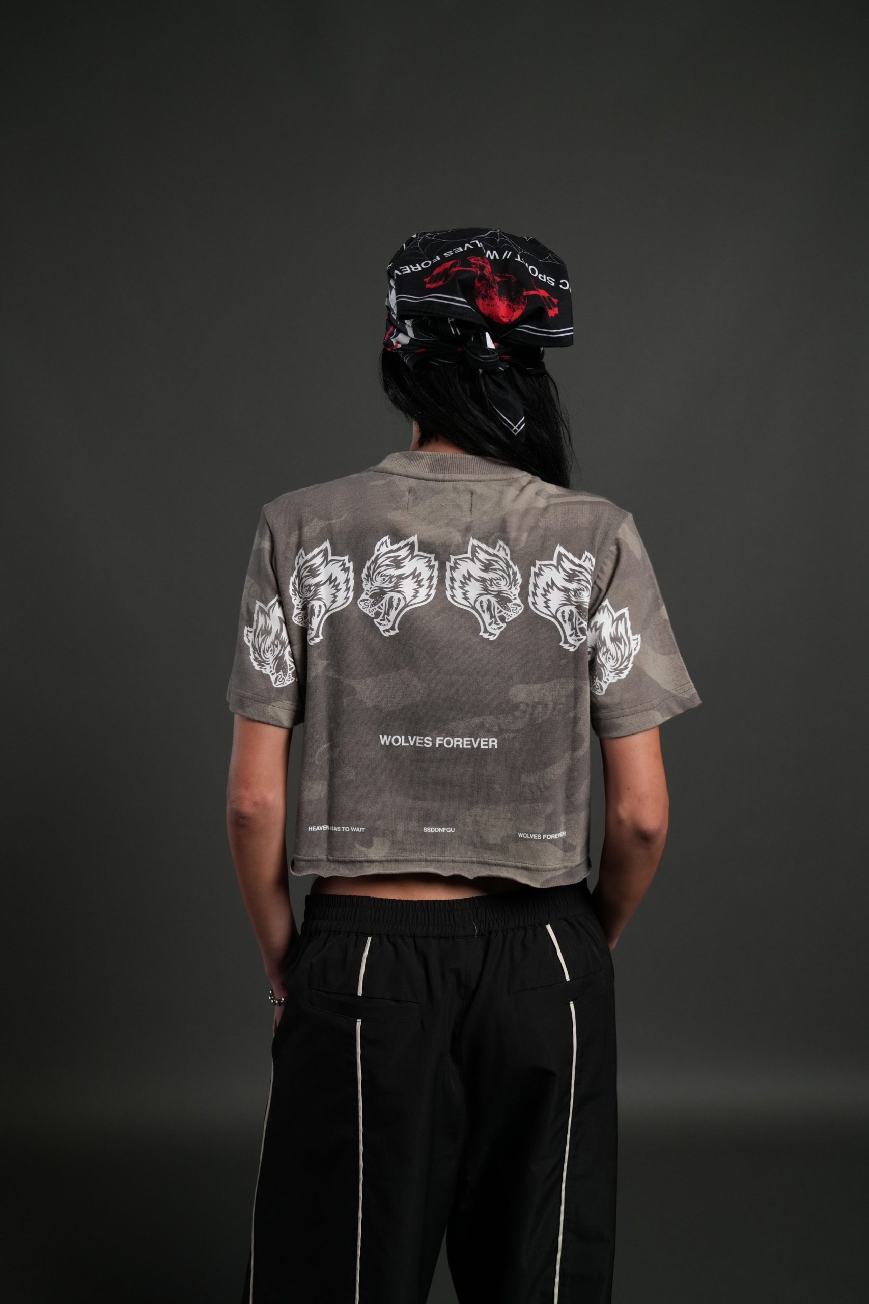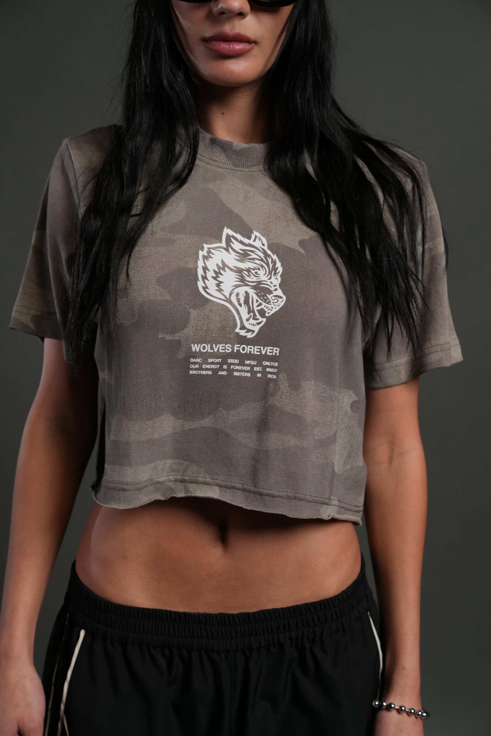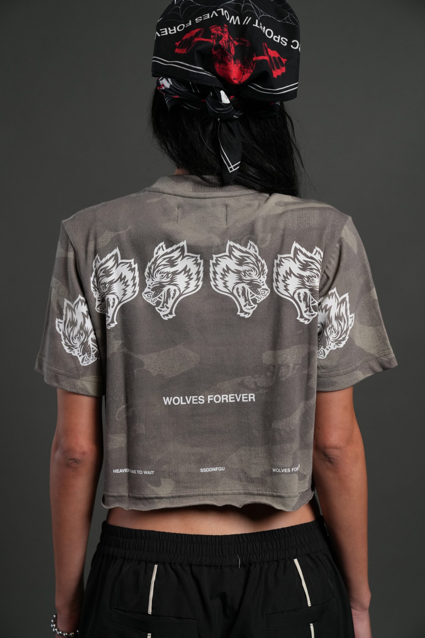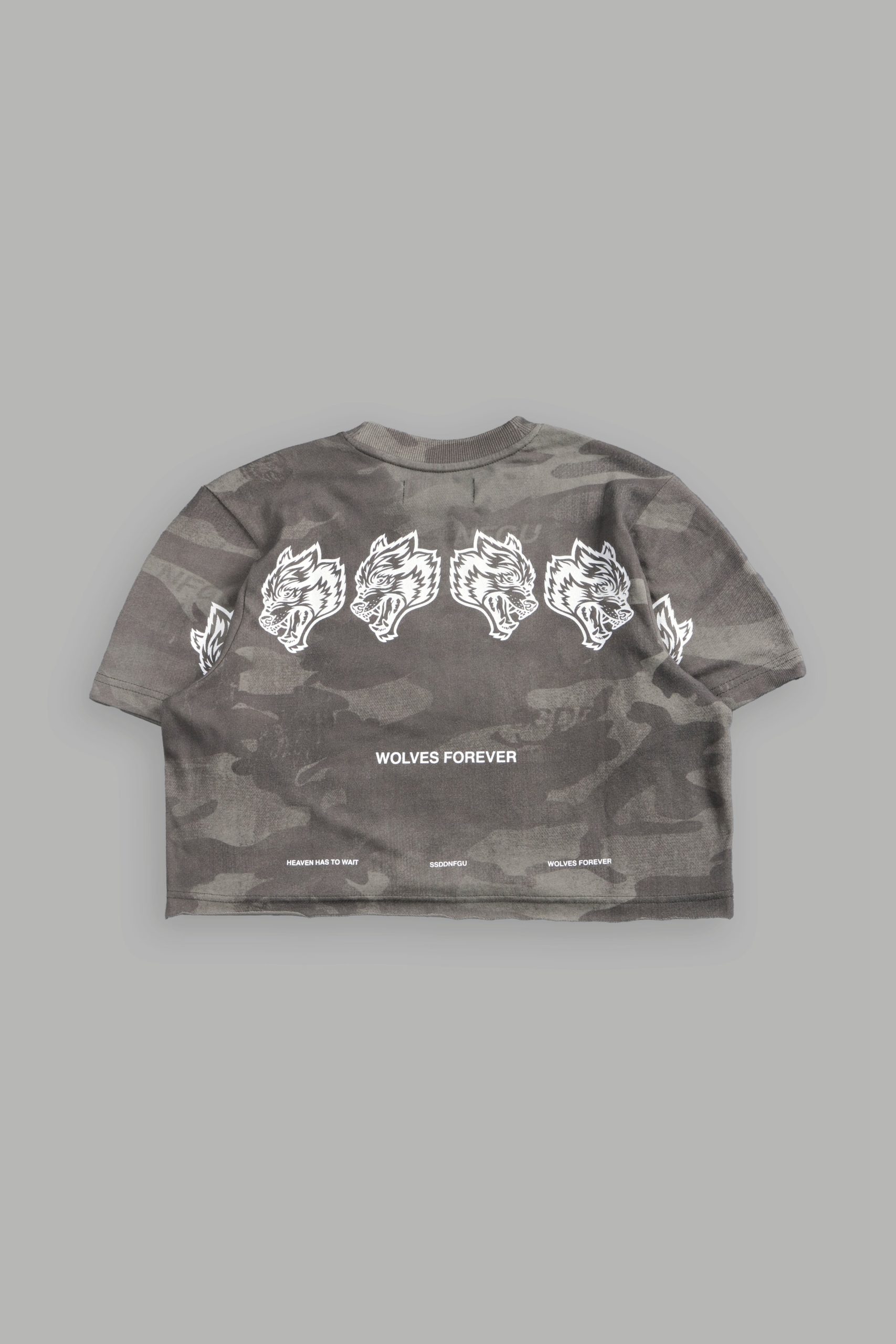 Wolves Have Your Back Premium Oversized Cropped Tee in Lush Vintage Woodland Camo