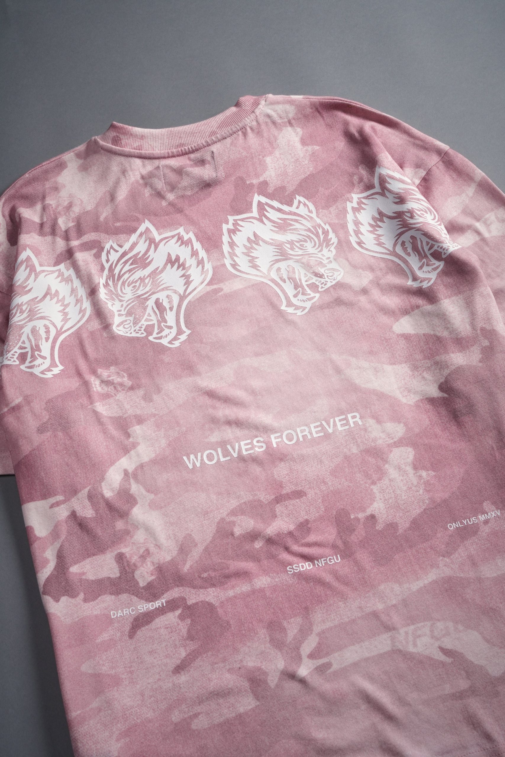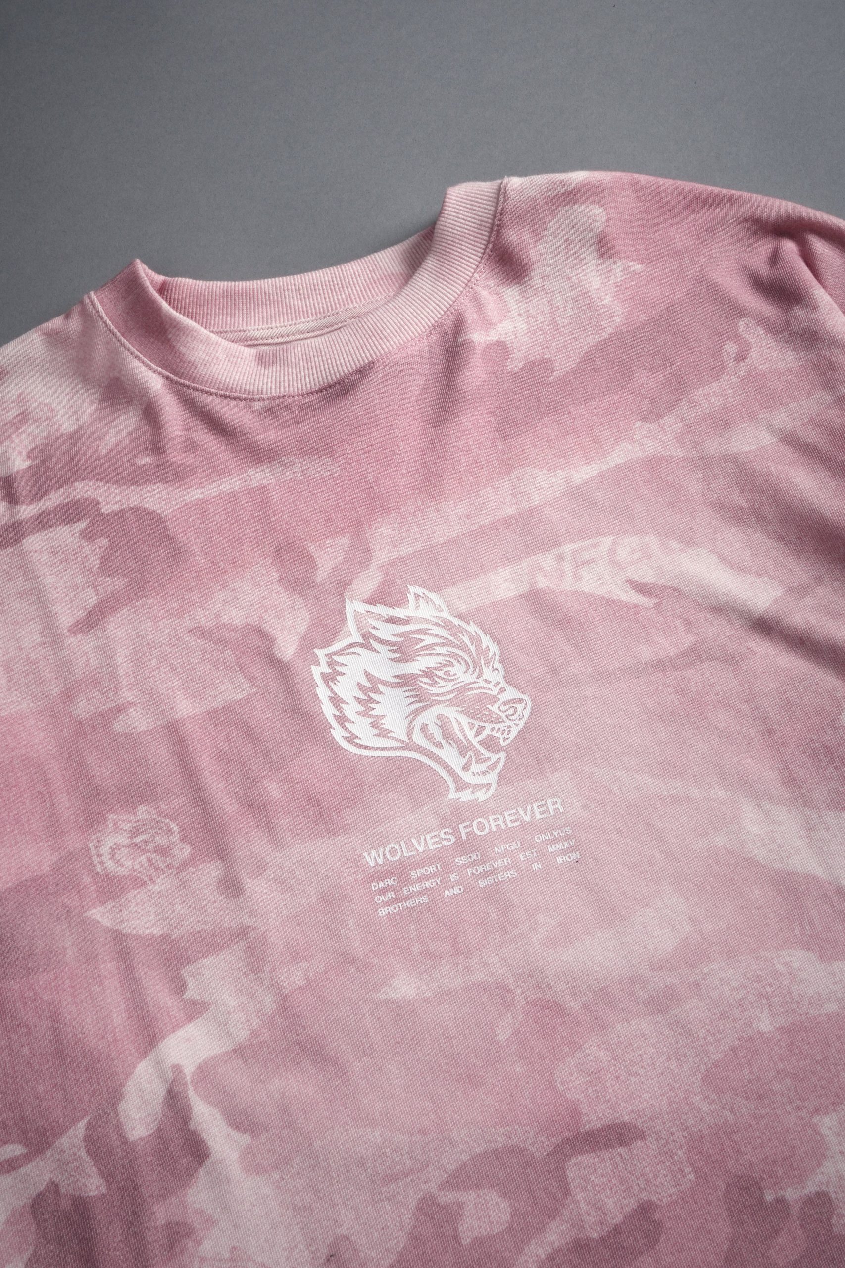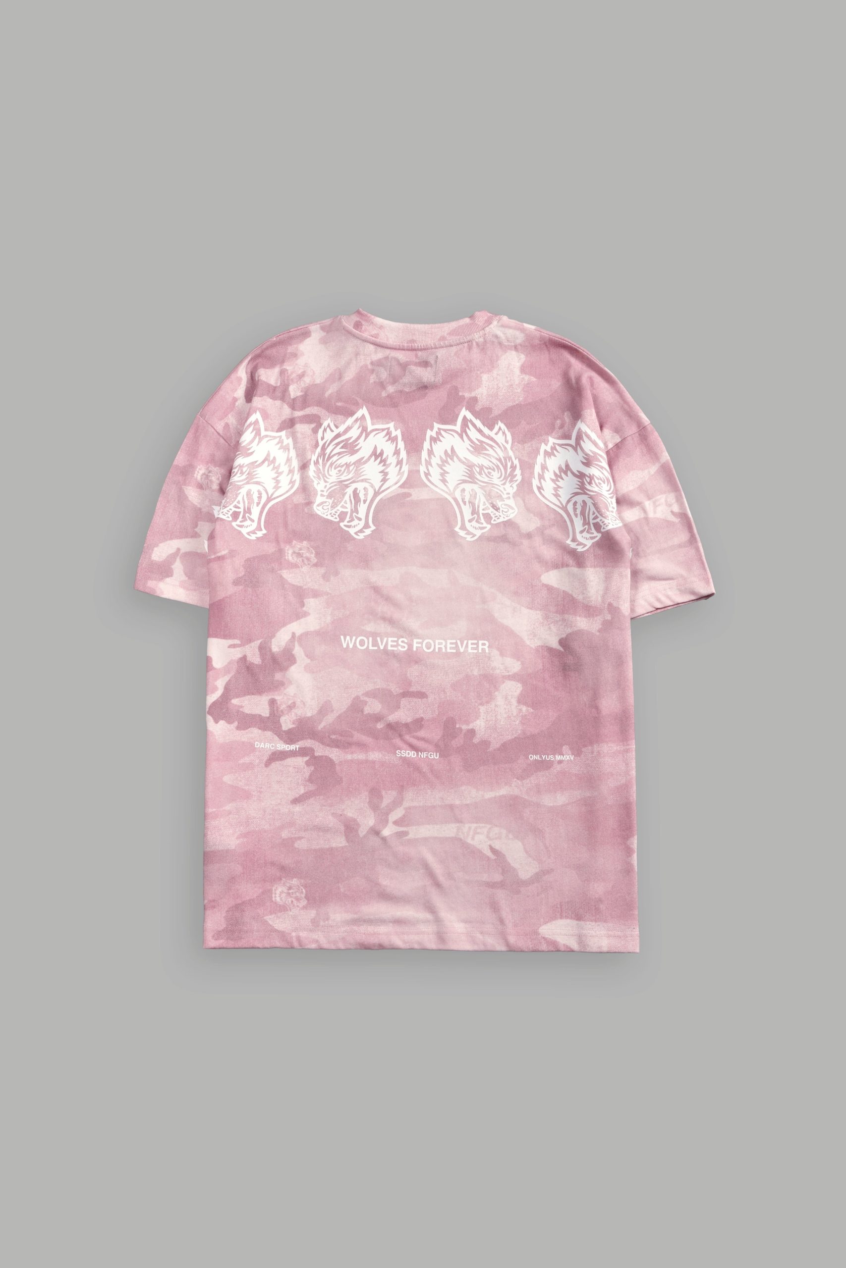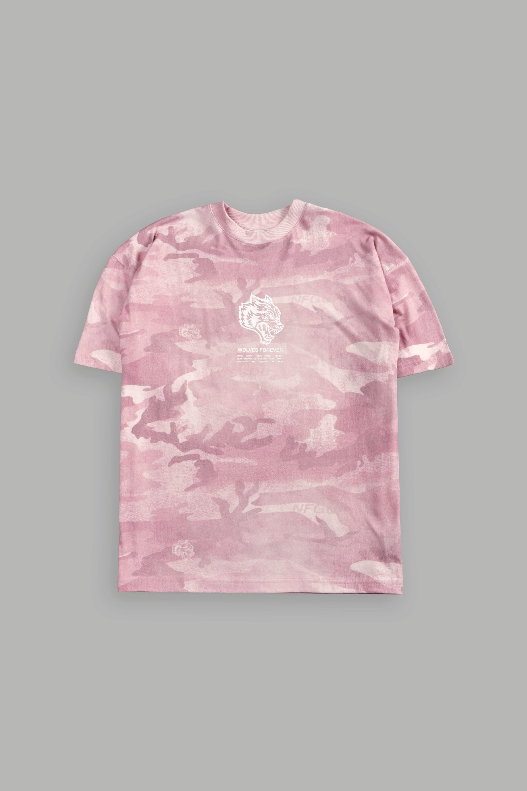 Wolves Have Your Back Unisex Premium Oversized Tee in Blush Vintage Woodland Camo