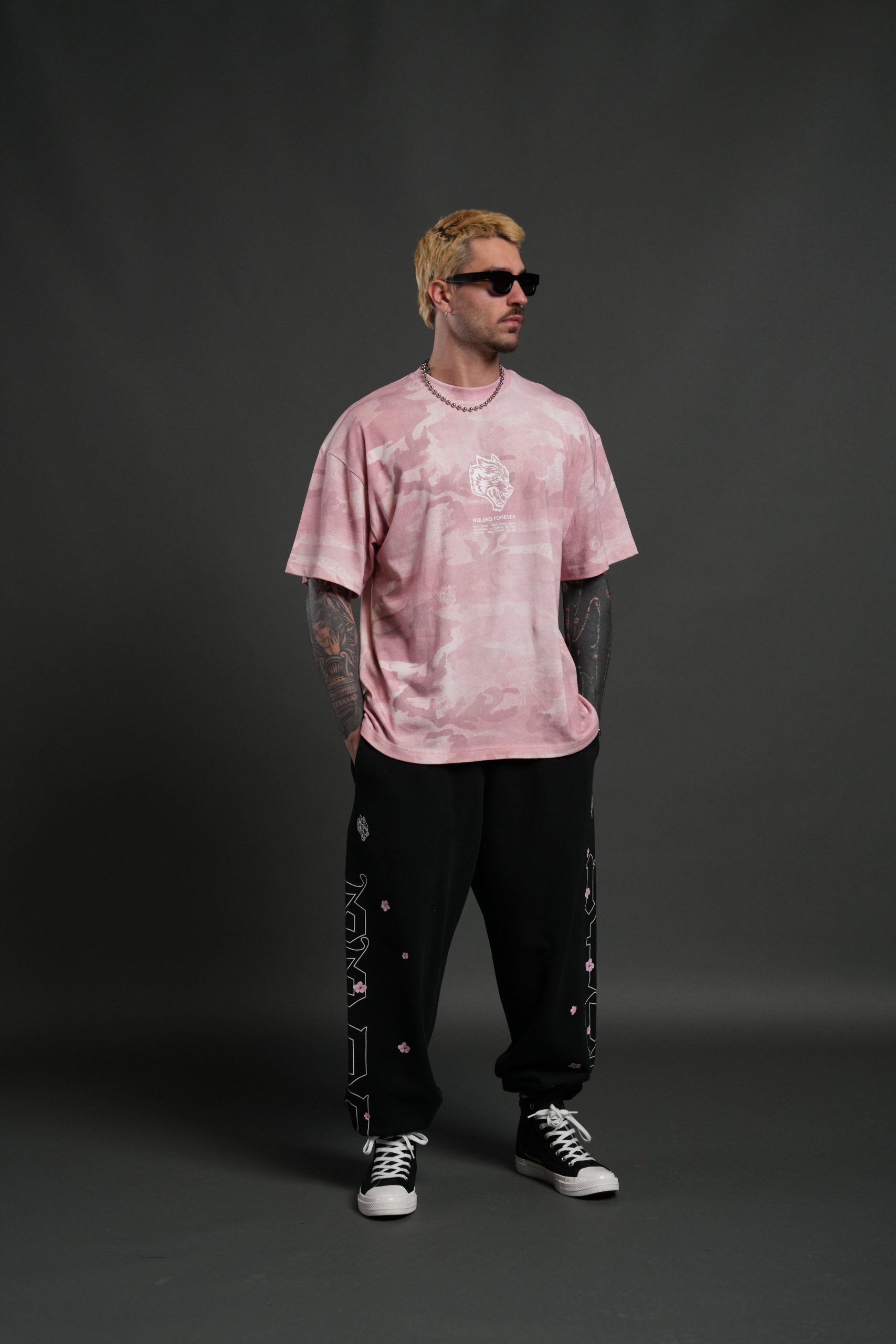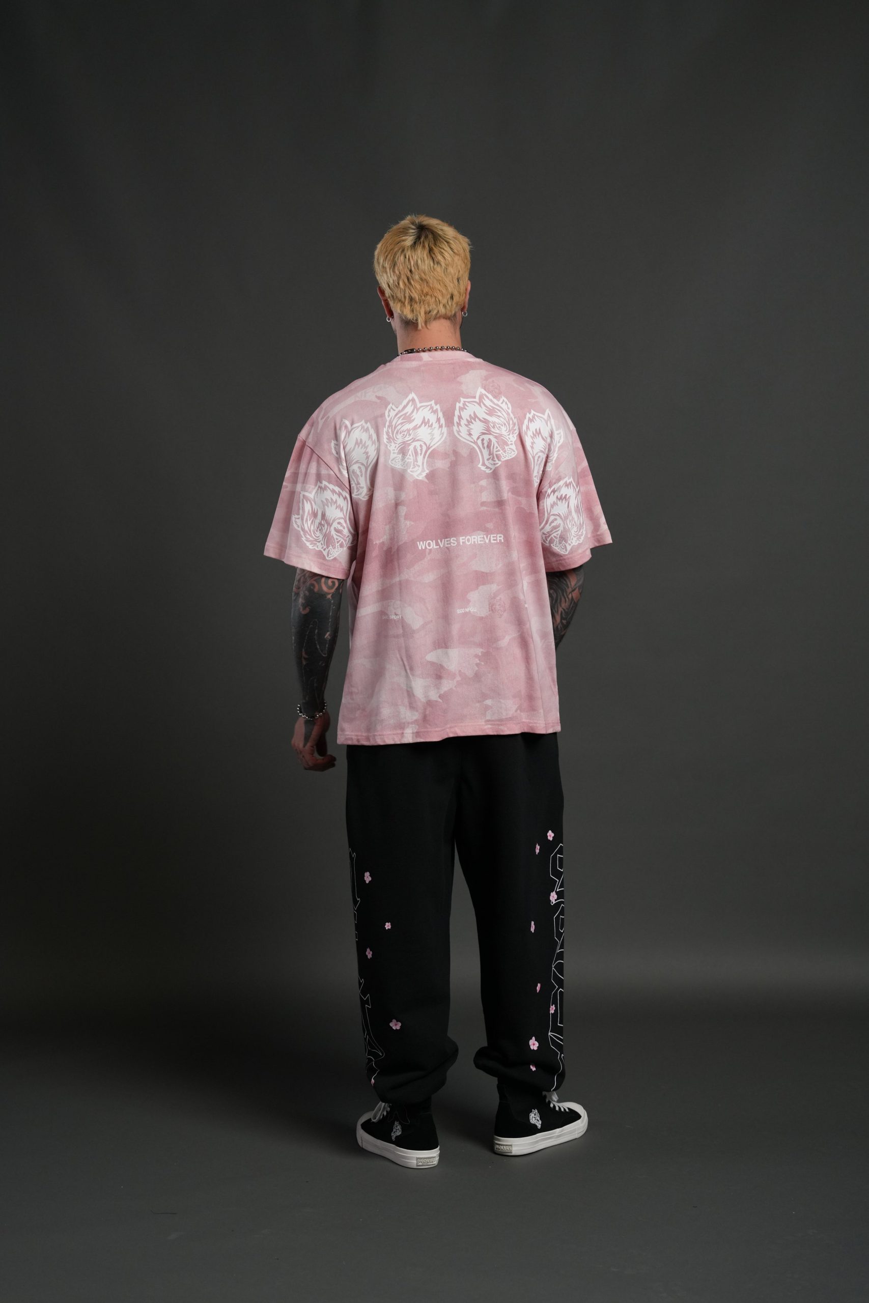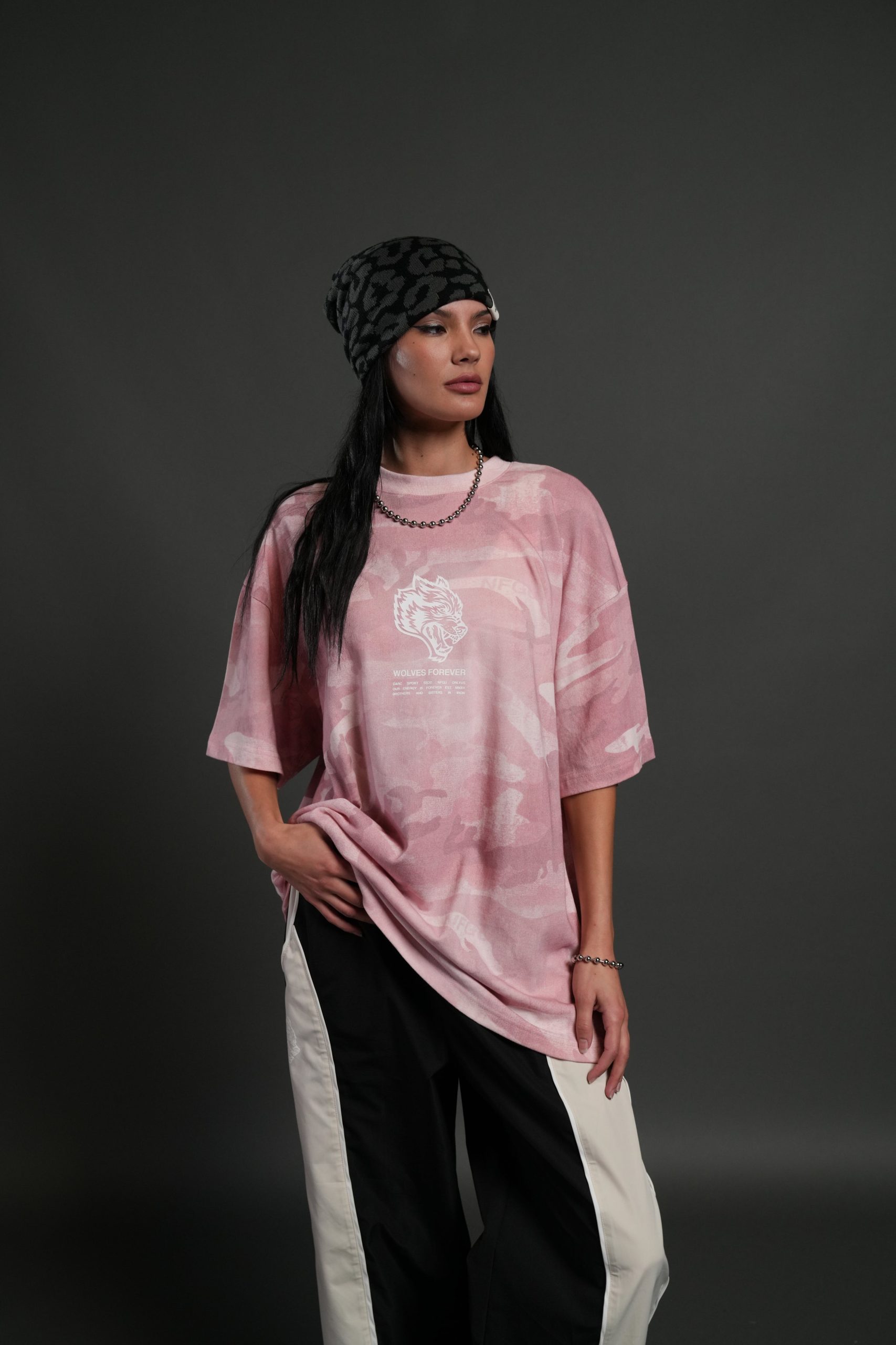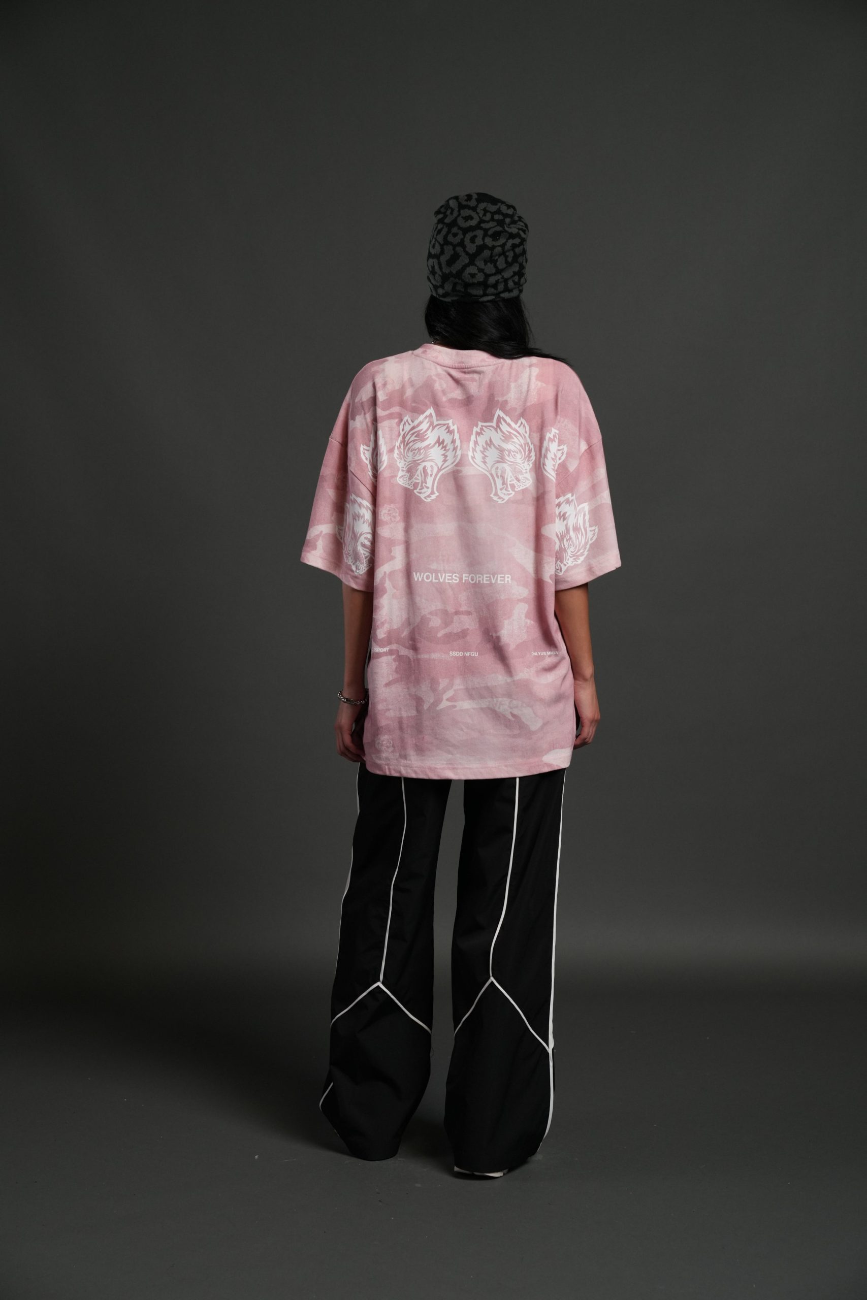 Wolves Have Your Back Unisex Premium Oversized Tee in Blush Vintage Woodland Camo